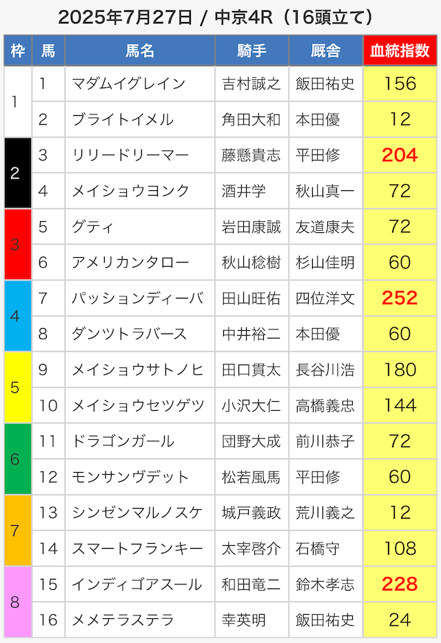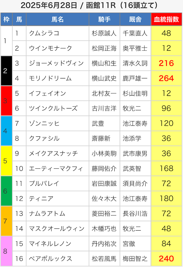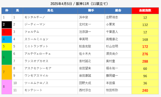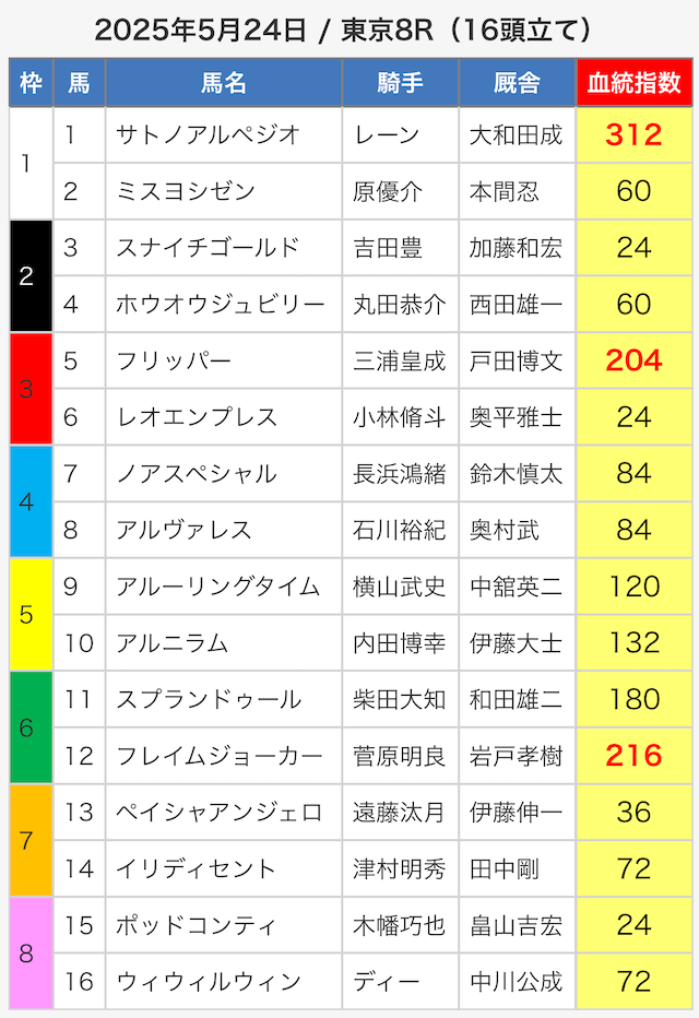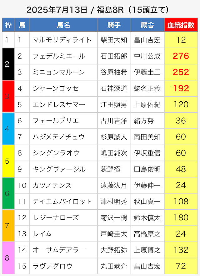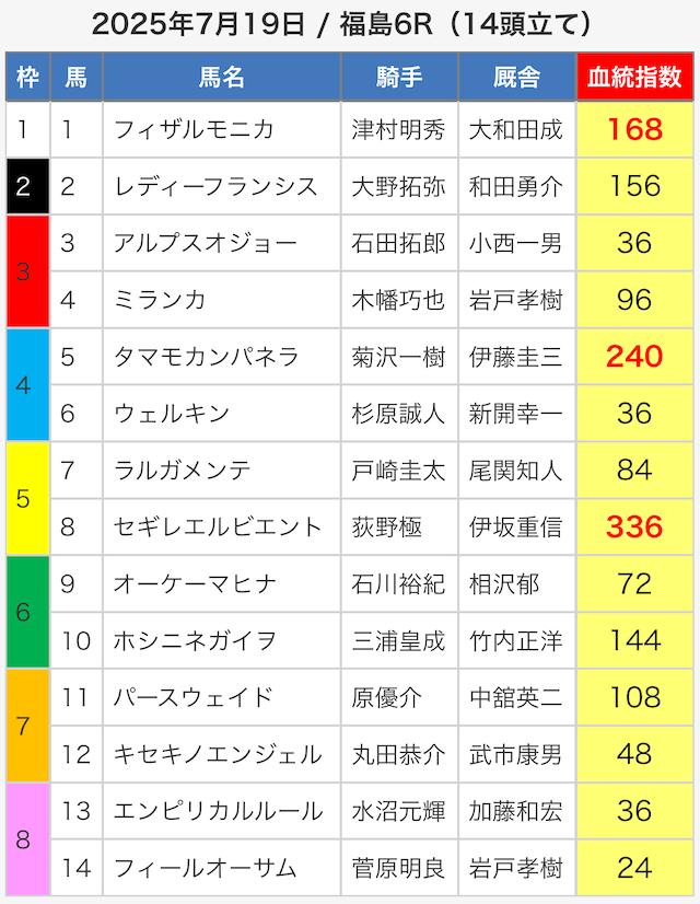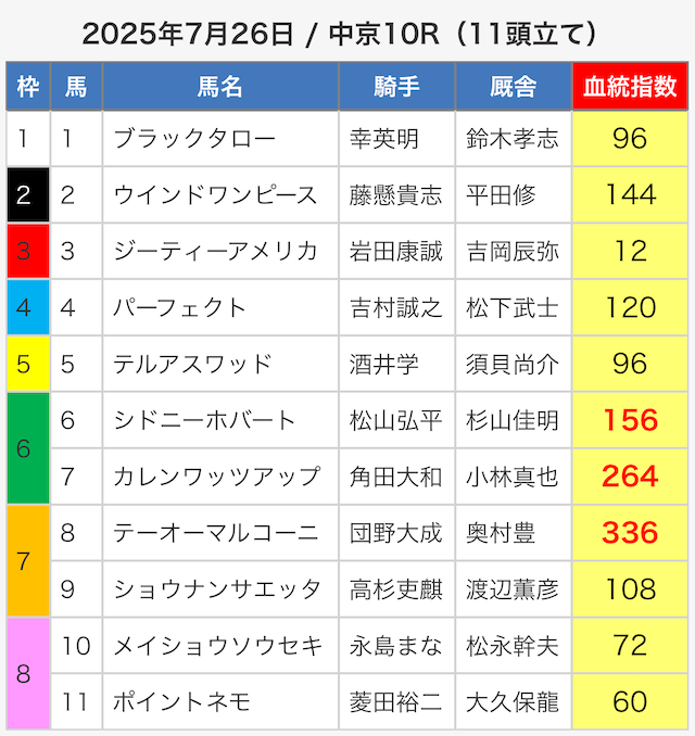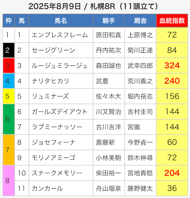 ⑧コンプリートや①ハッピードリームが⑩メダリストをマークして、差し馬はよほど展開が向かない限り届きにくい想定となっています。