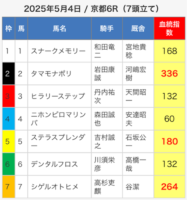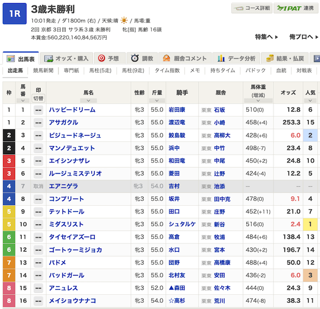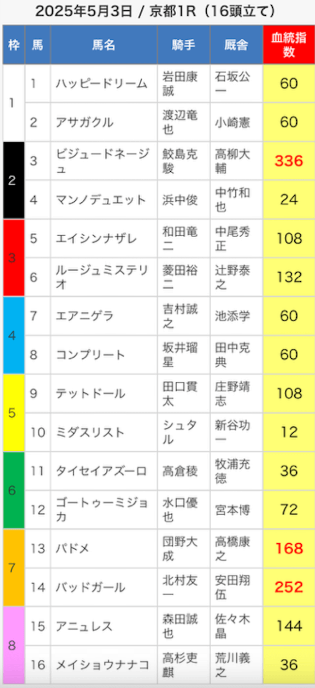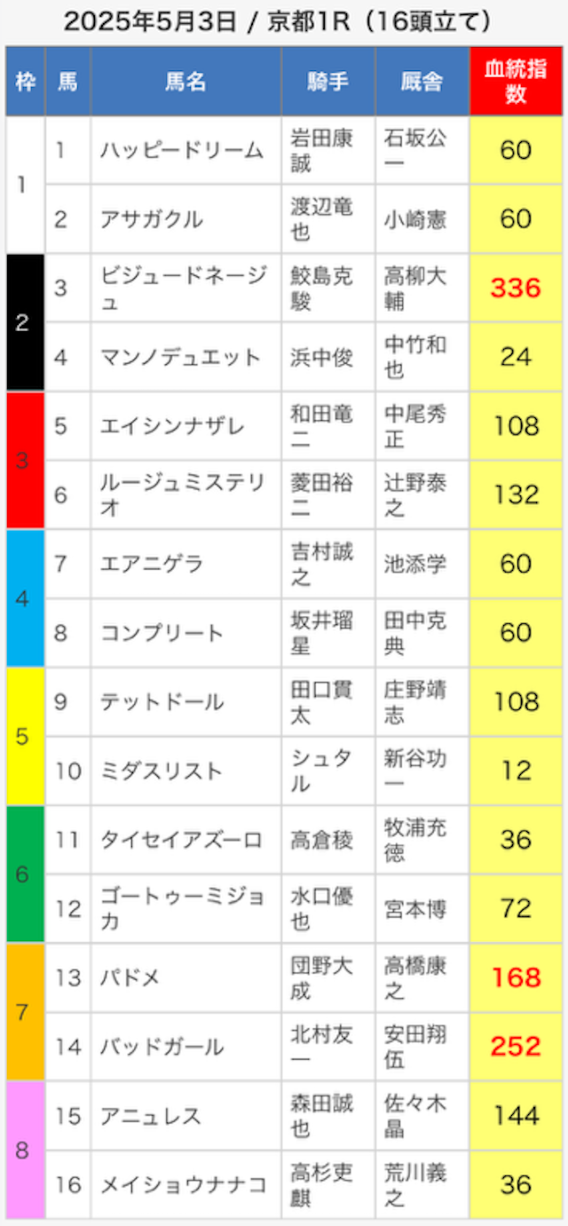 対象レースは、2025年5月3日京都1Rの「3歳未勝利」
