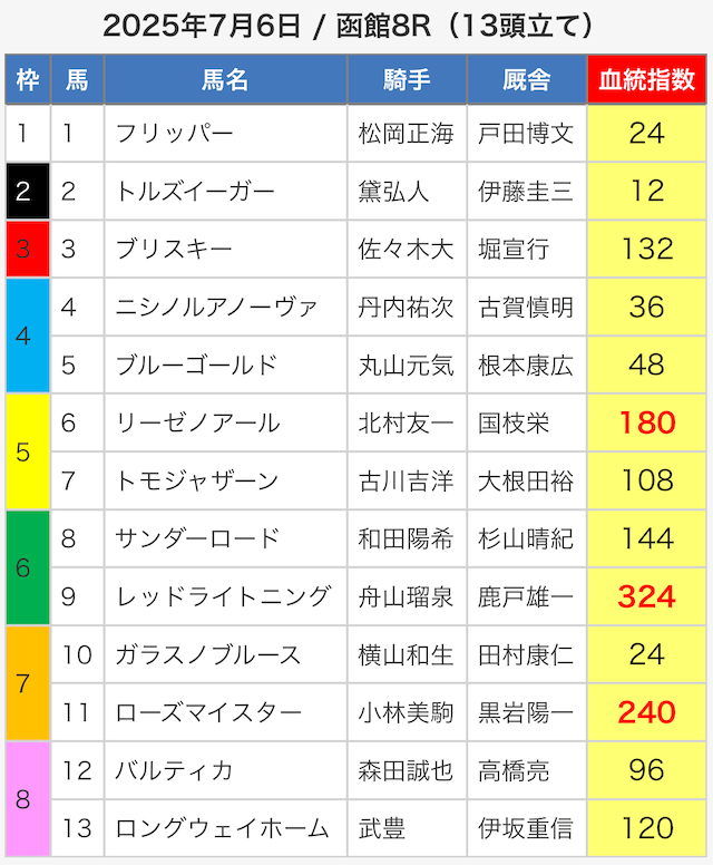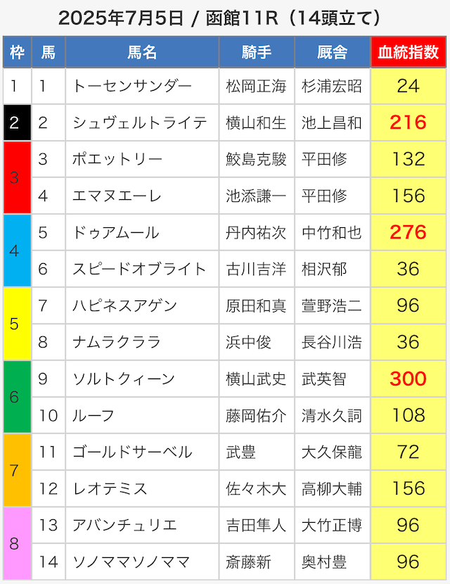 重馬場なら内でロスなく立ち回れる馬が有利で、1番人気のミダスリストは出脚が良さも考慮して馬券に絡む可能性はかなり高めです。