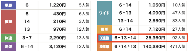 2025/06/15 花のみちステークス 95,800円 条件戦 3連複