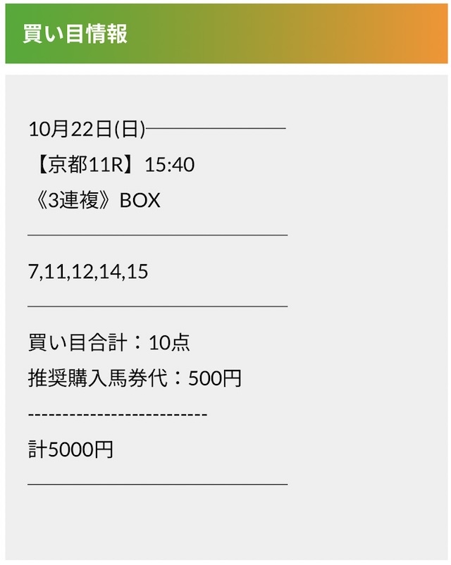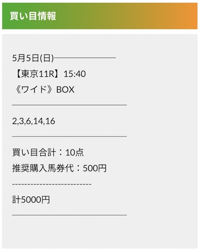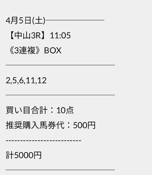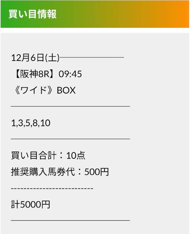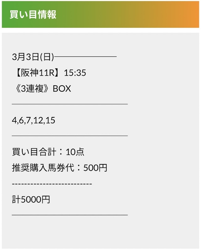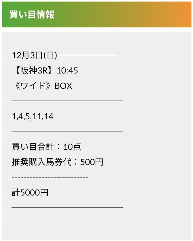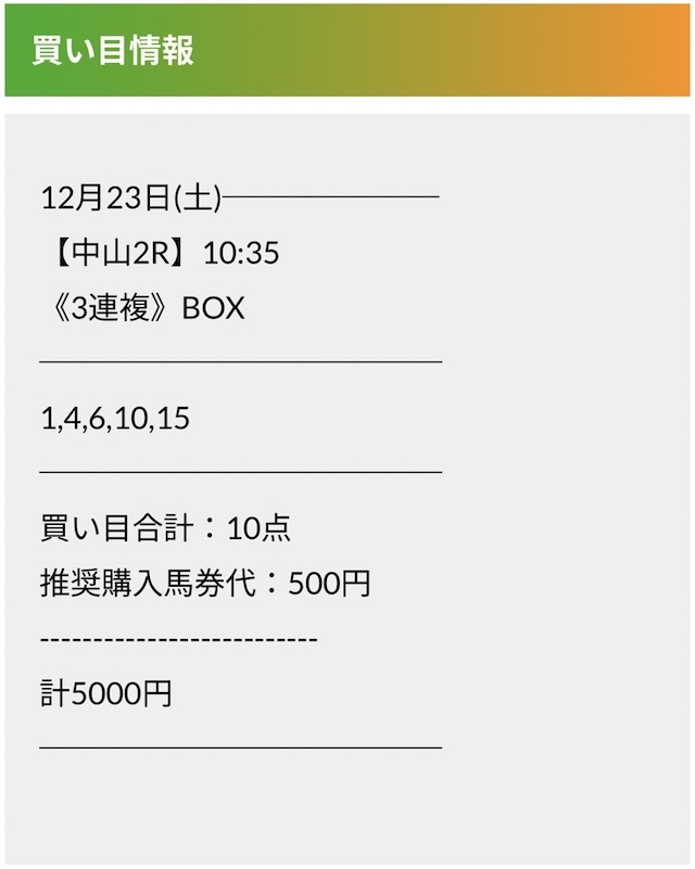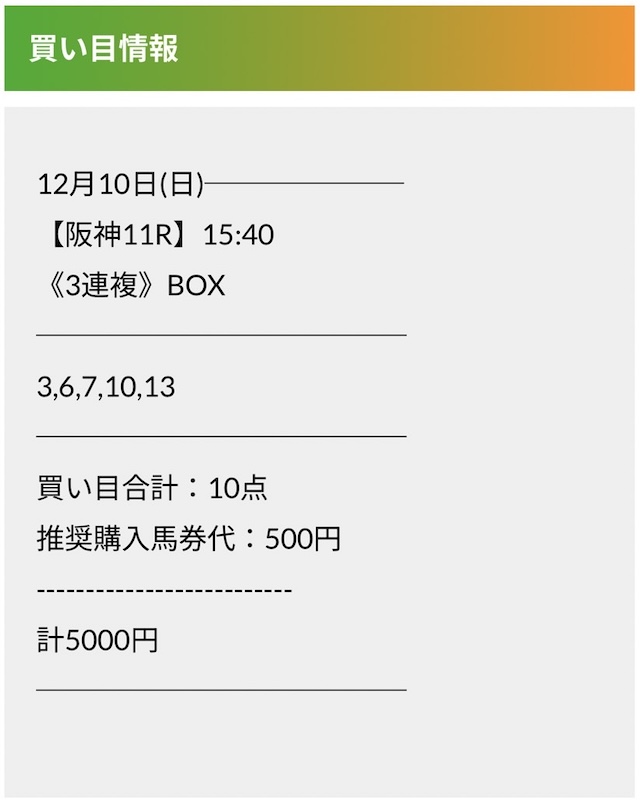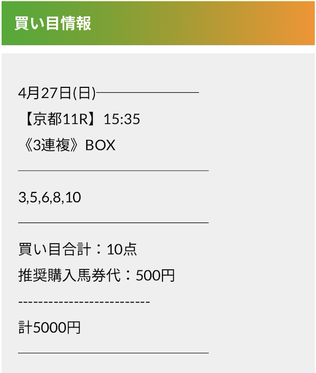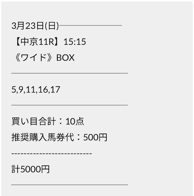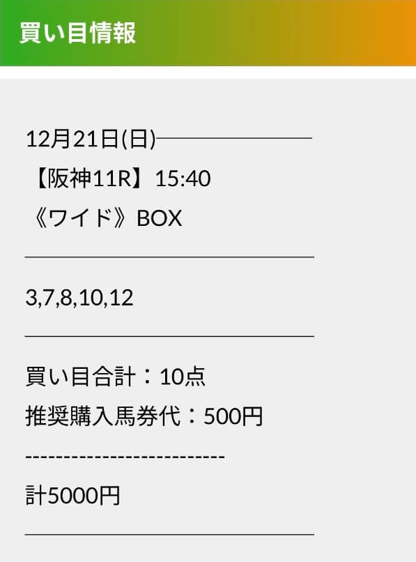 この状況でバクシスはどの馬を選んだのか。実際に公開された買い目がこちらです。