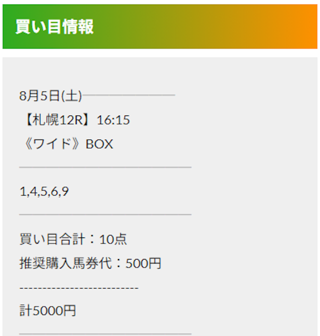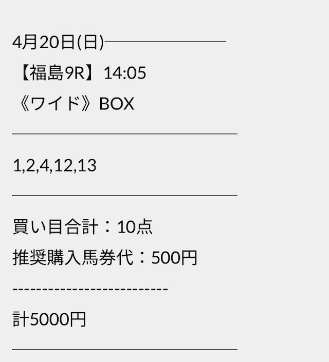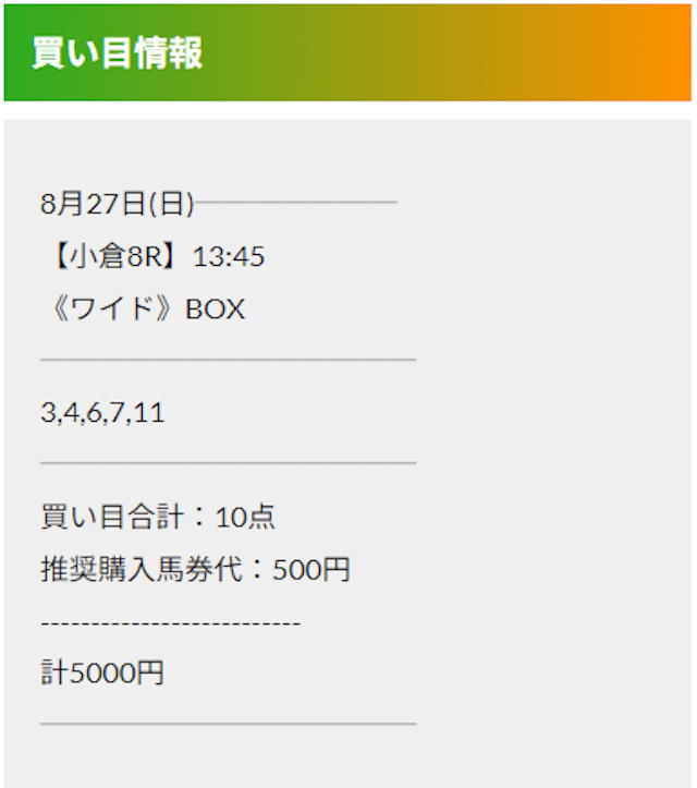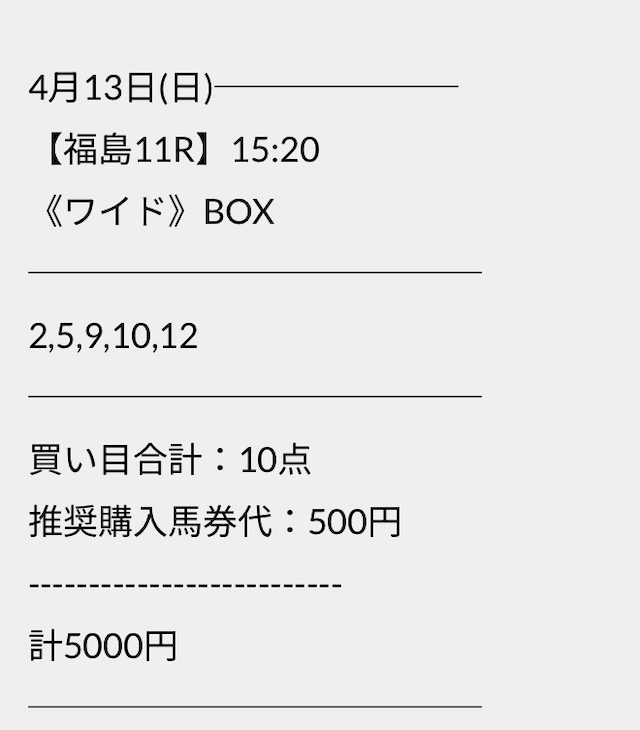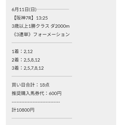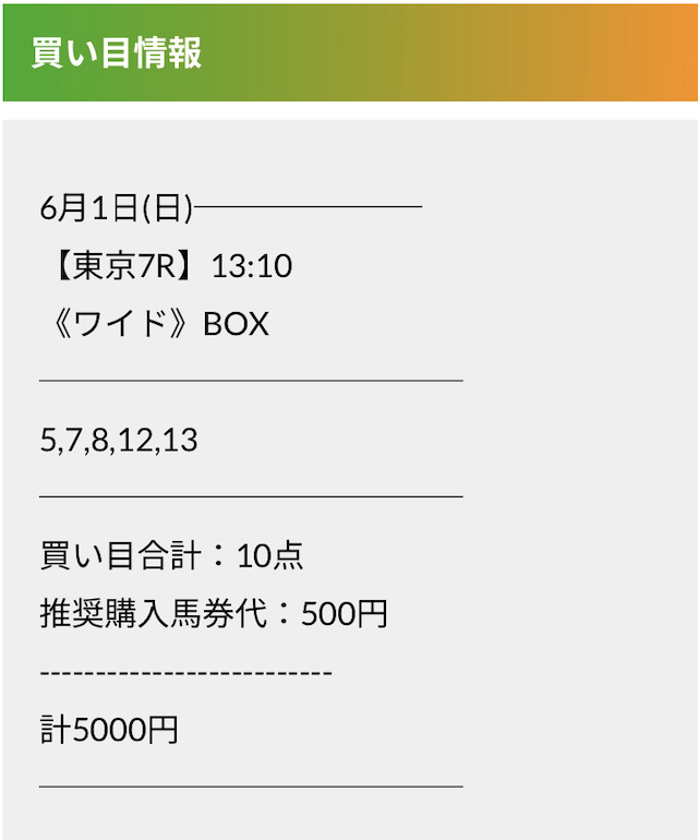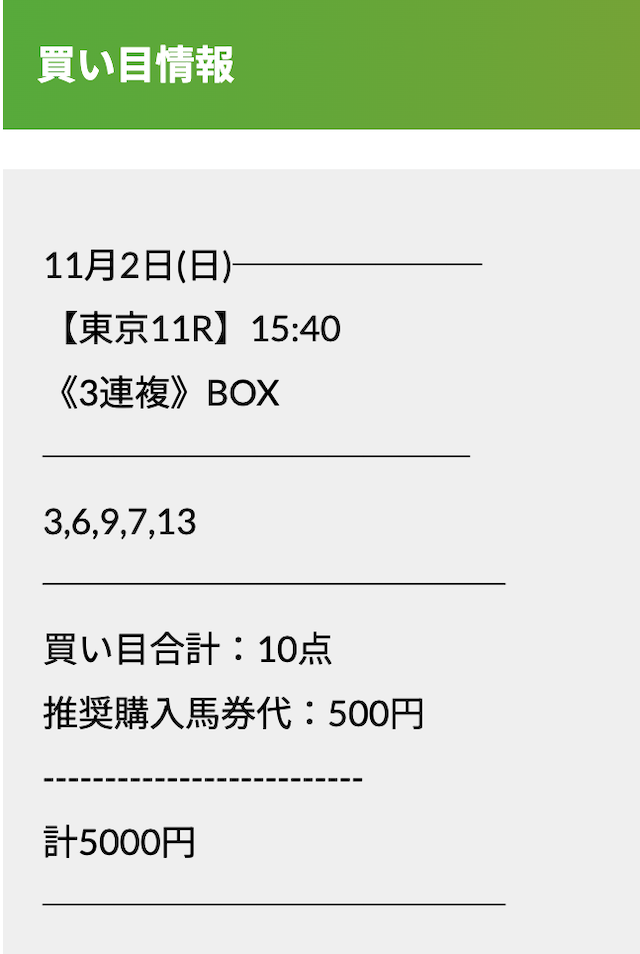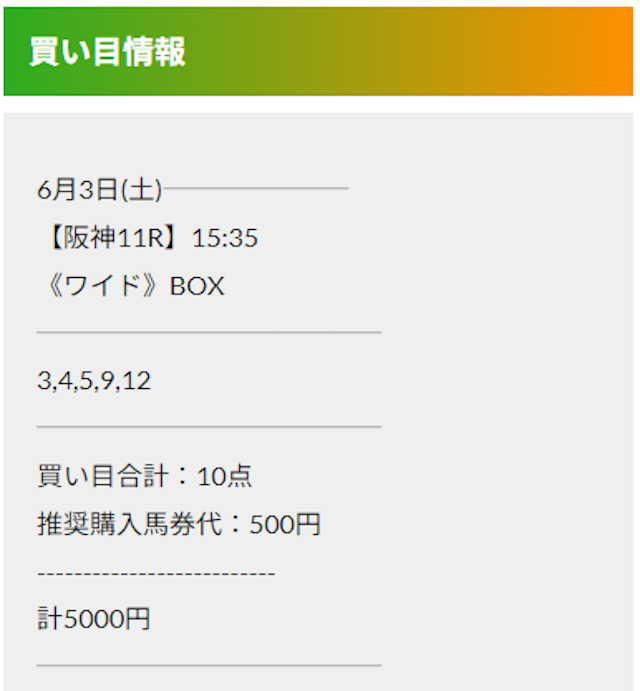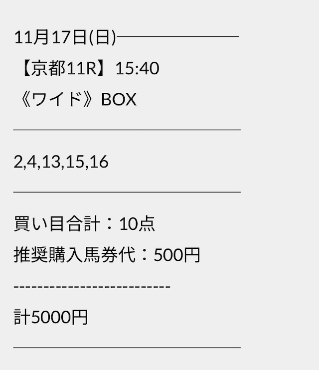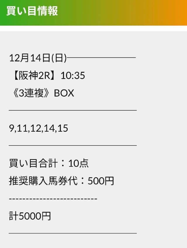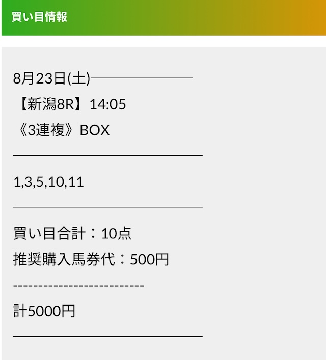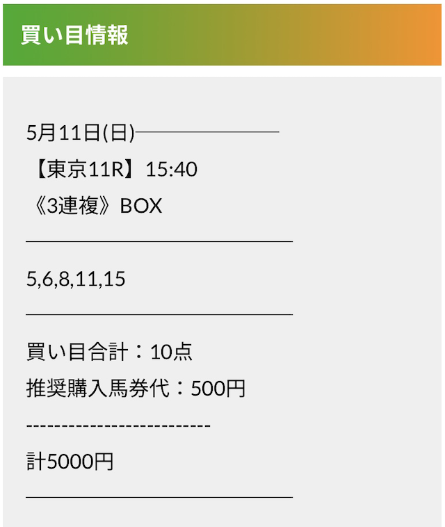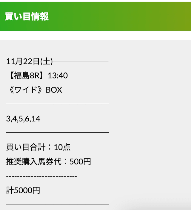 この状況でバクシスはどの馬を選んだのか。実際に公開された買い目がこちらです。