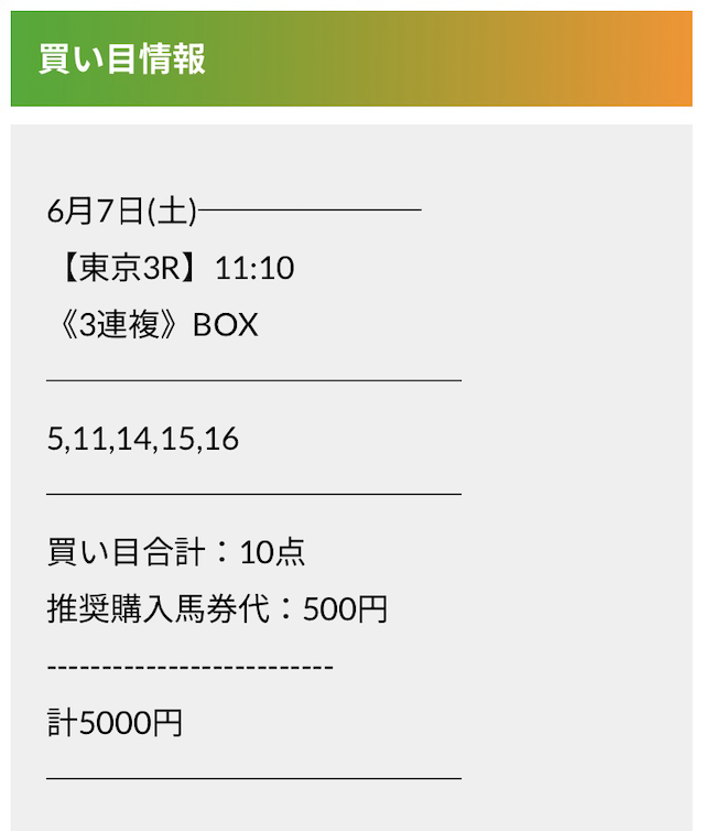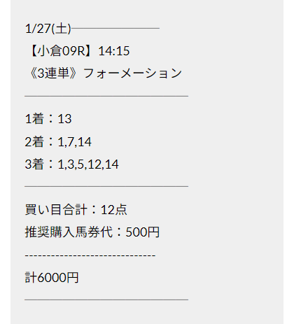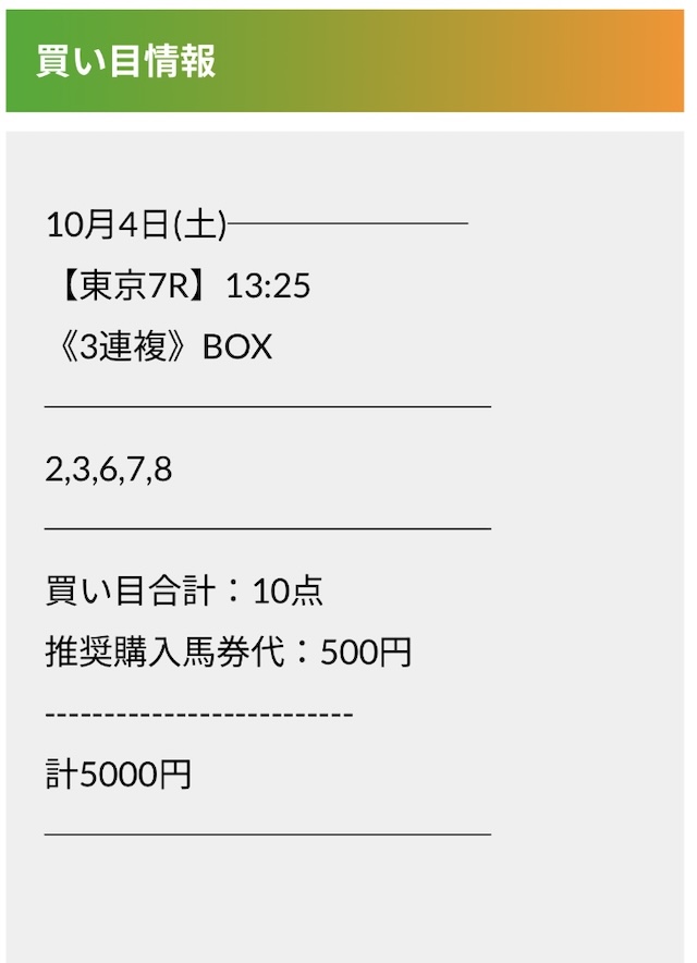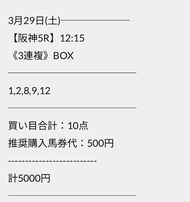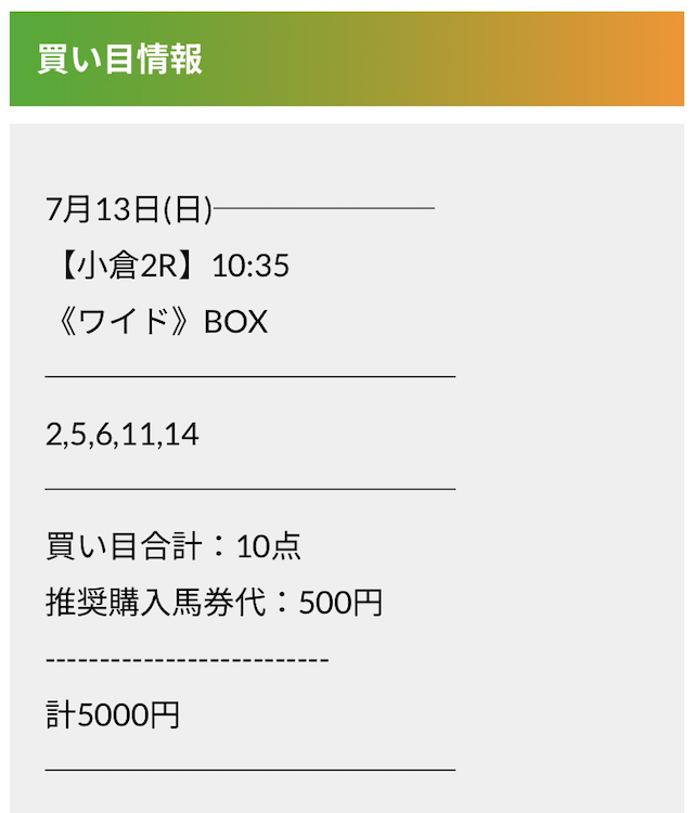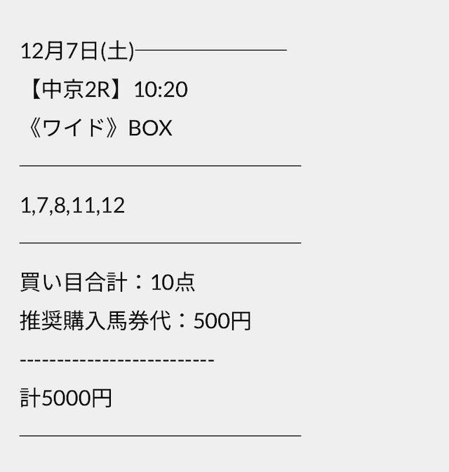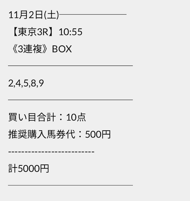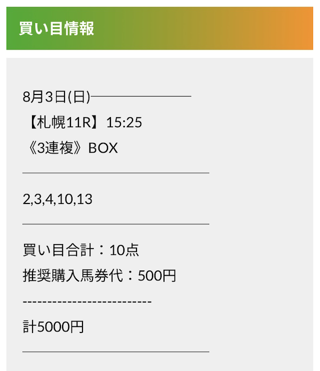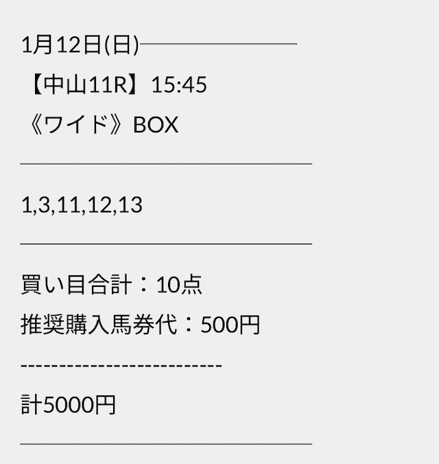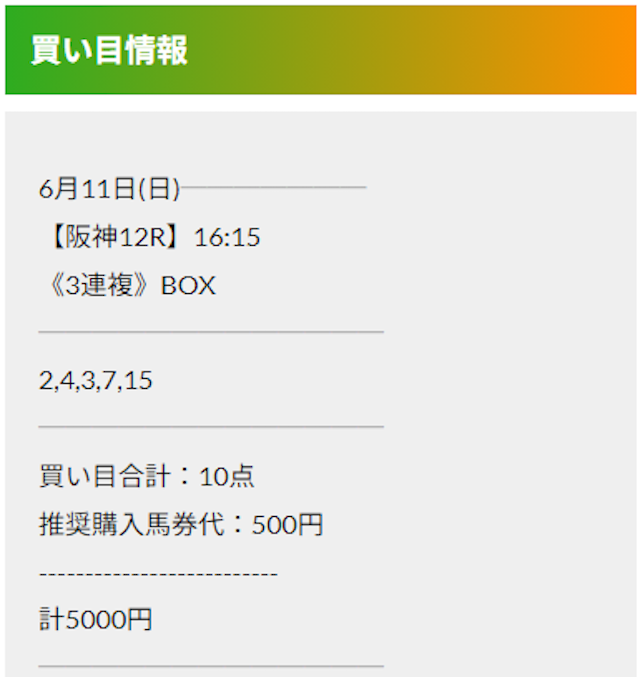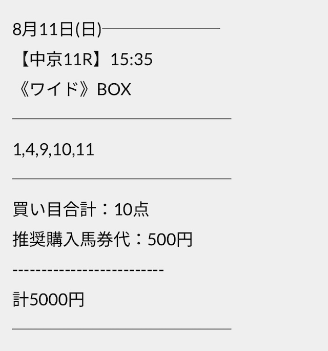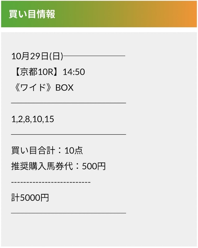 この状況でバクシスはどの馬を選んだのか。実際に公開された買い目がこちらです。