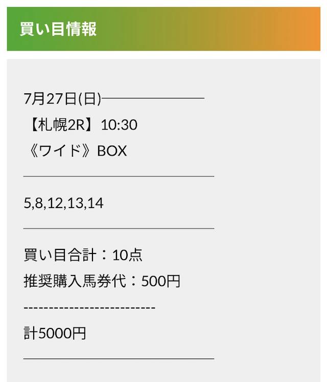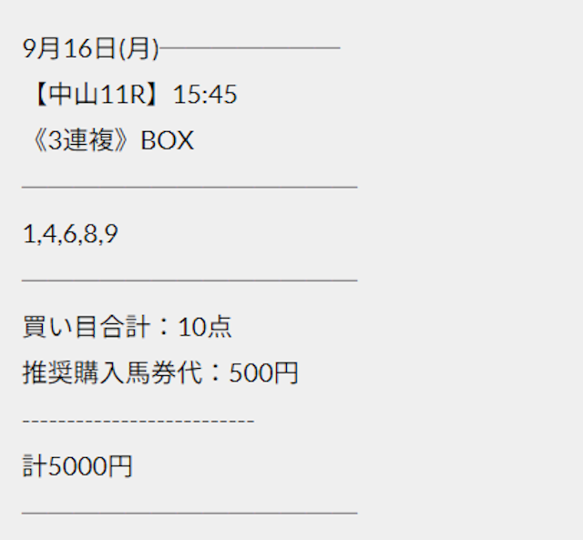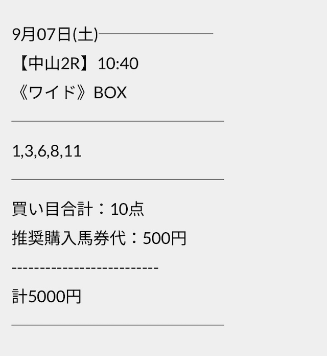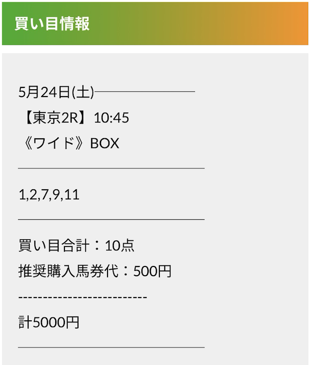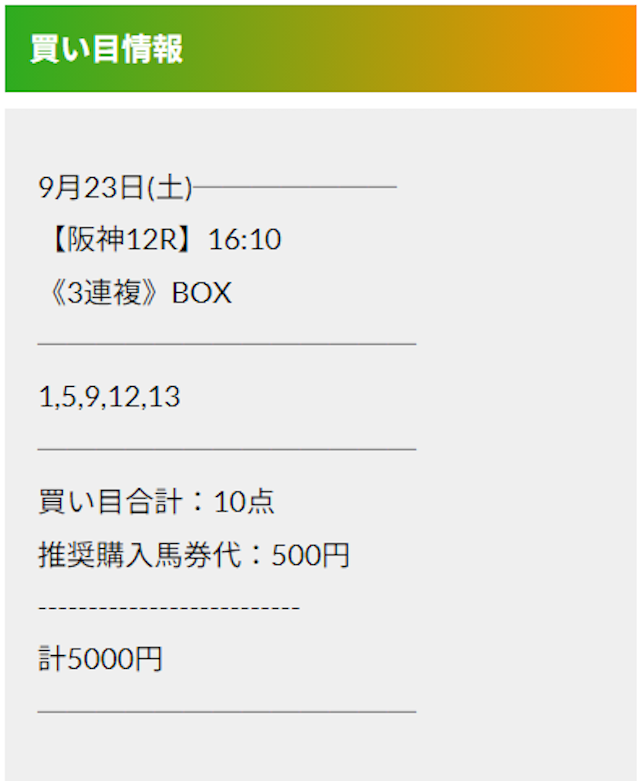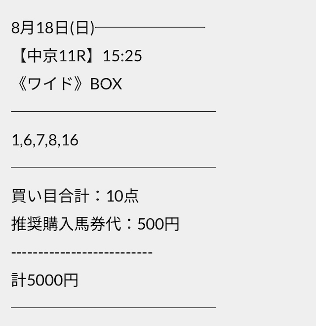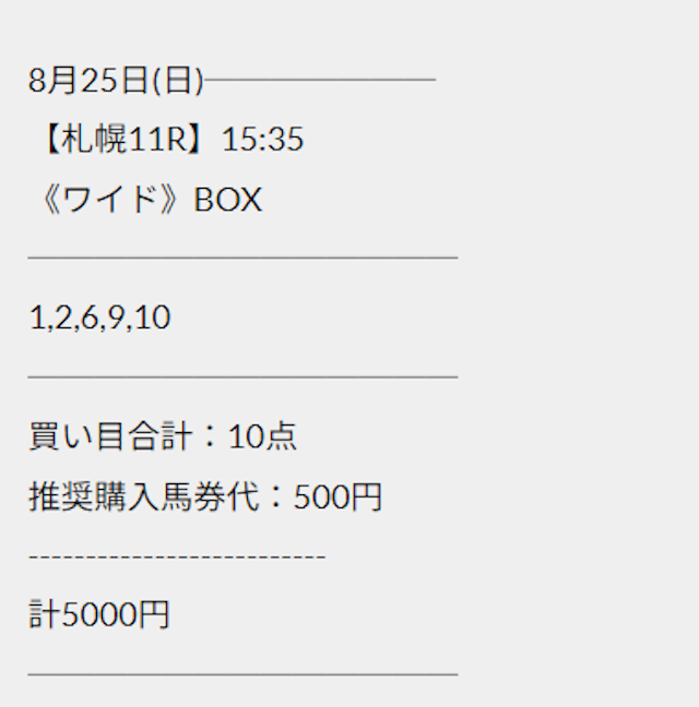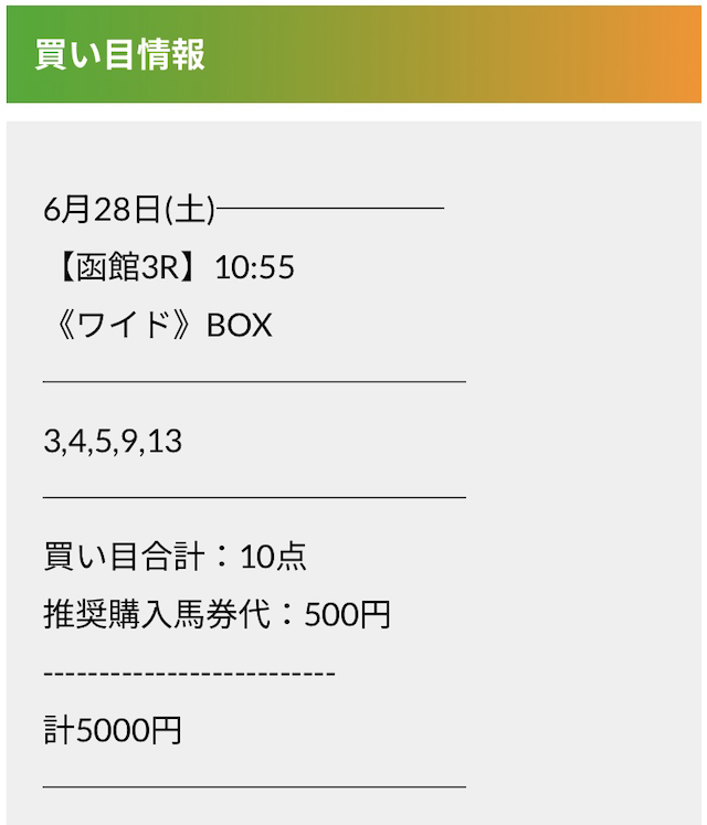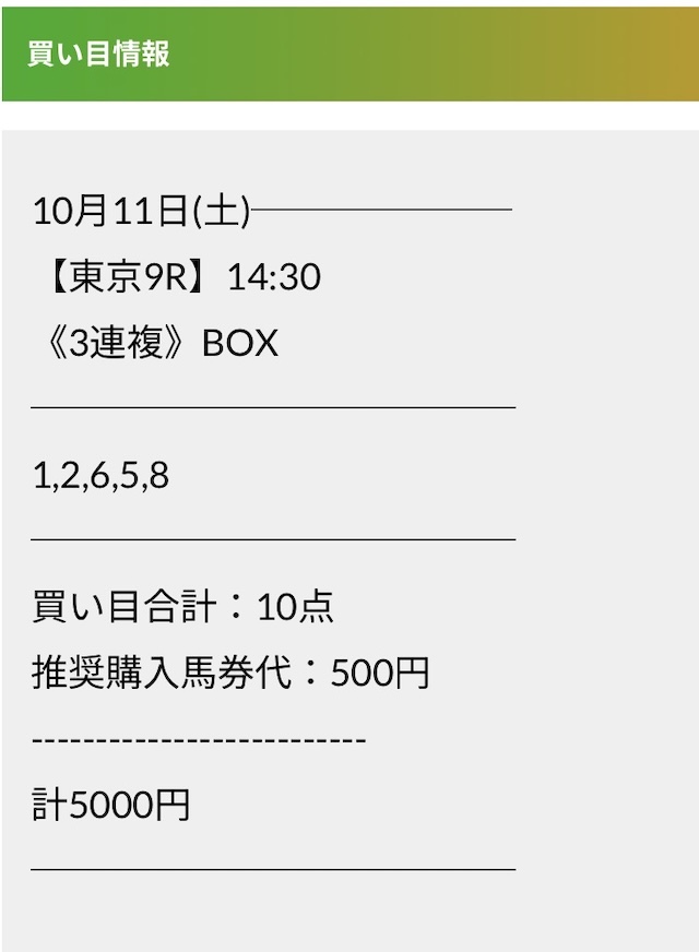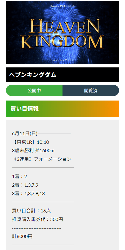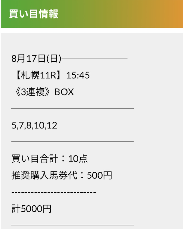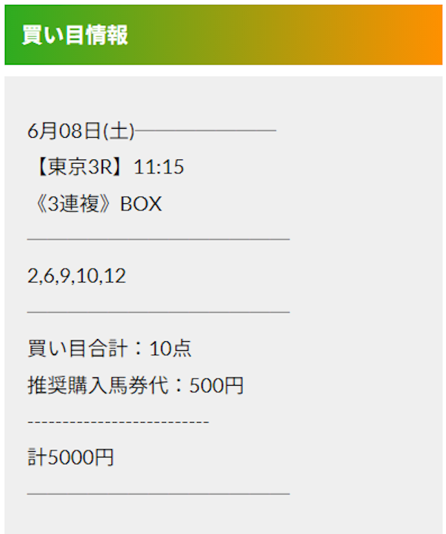 この状況でバクシスはどの馬を選んだのか。実際に公開された買い目がこちらです。