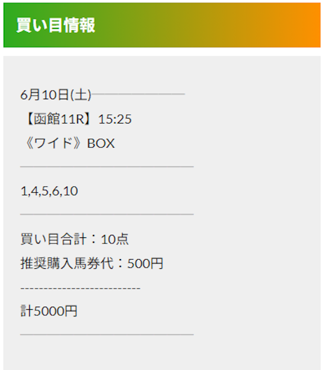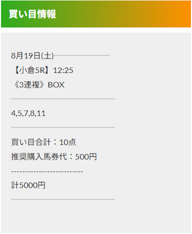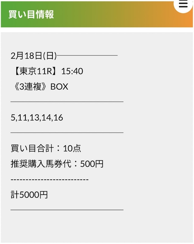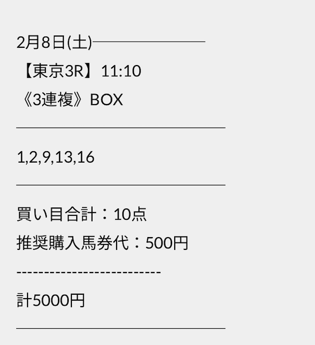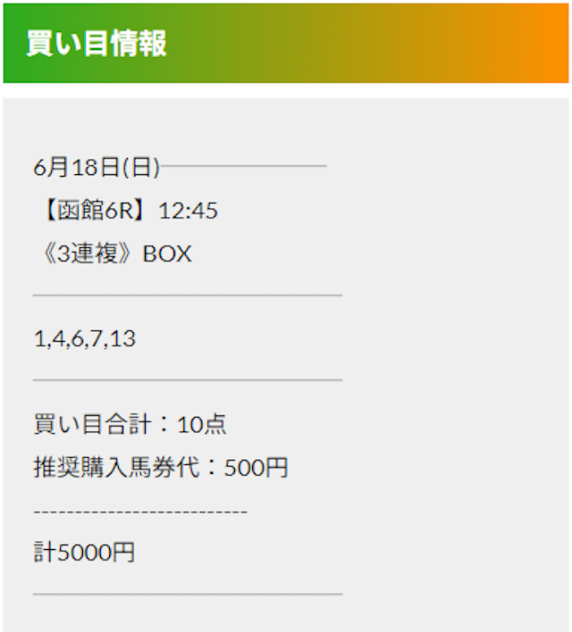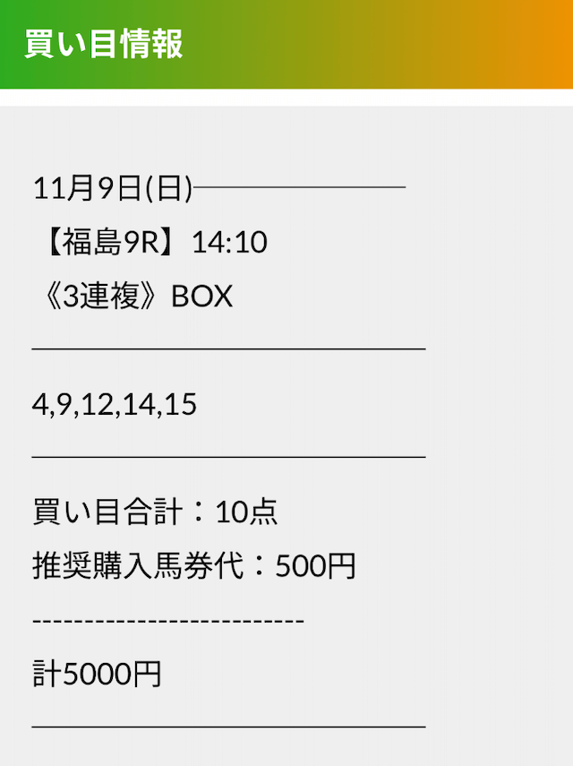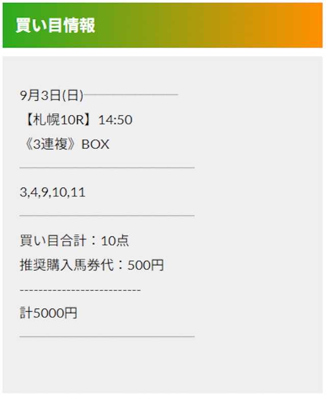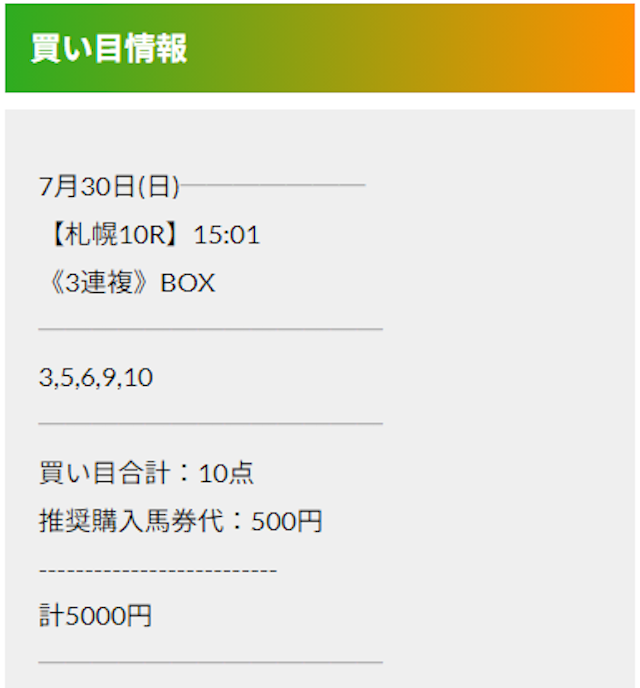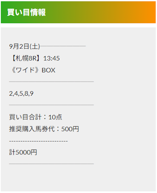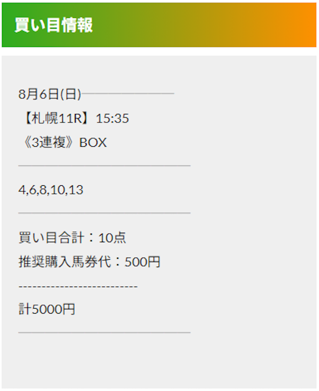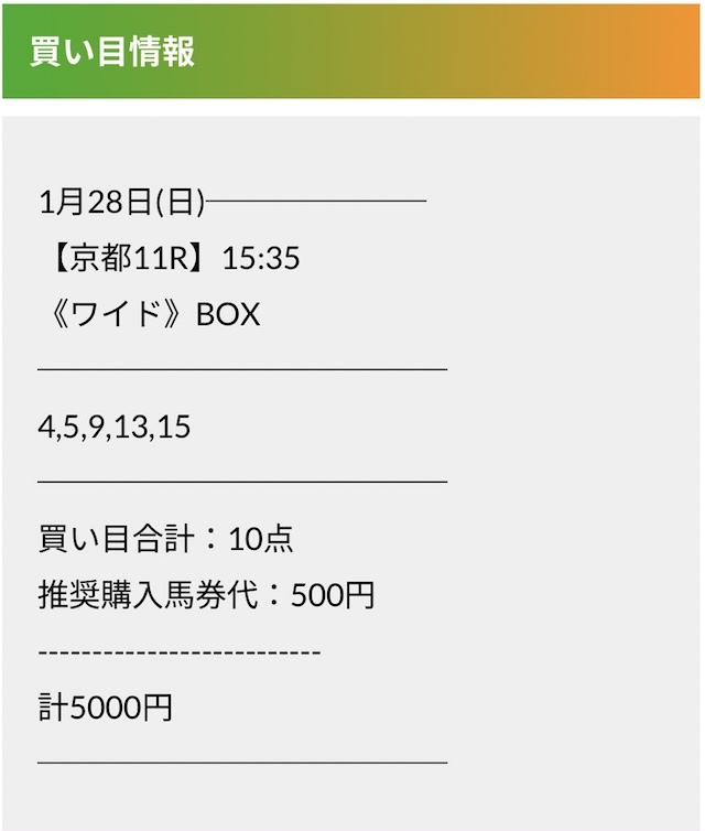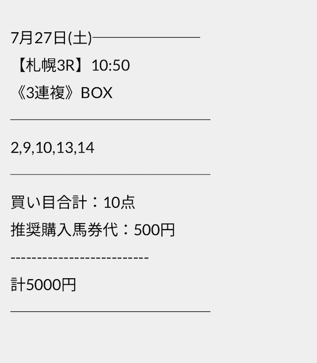 この状況でバクシスはどの馬を選んだのか。実際に公開された買い目がこちらです。
