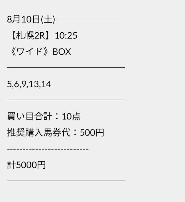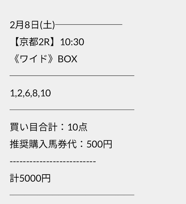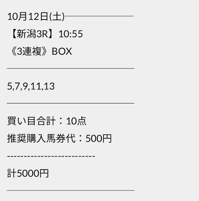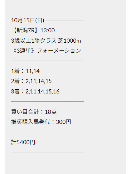 点数も6点とかなり少なく若干不安ではありますが、バクシスの予想どおりに馬券を購入していきます。