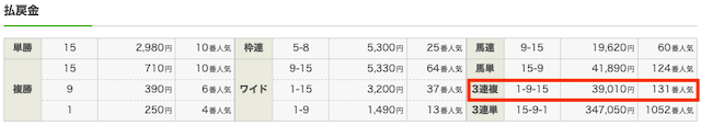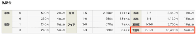 3連単のオッズは184.0倍がつき、1点900円で購入していたため165,600円の払い戻しを獲得することができました!