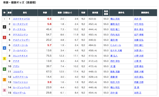 まずは出走表から見ていきましょう。
