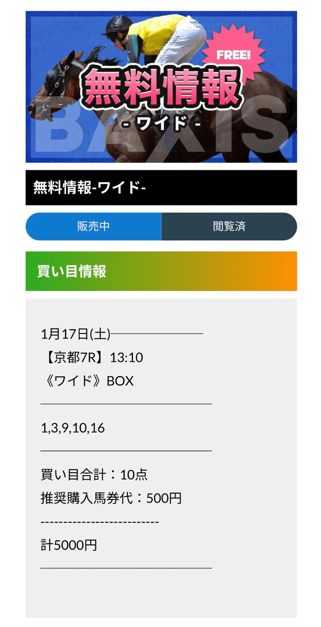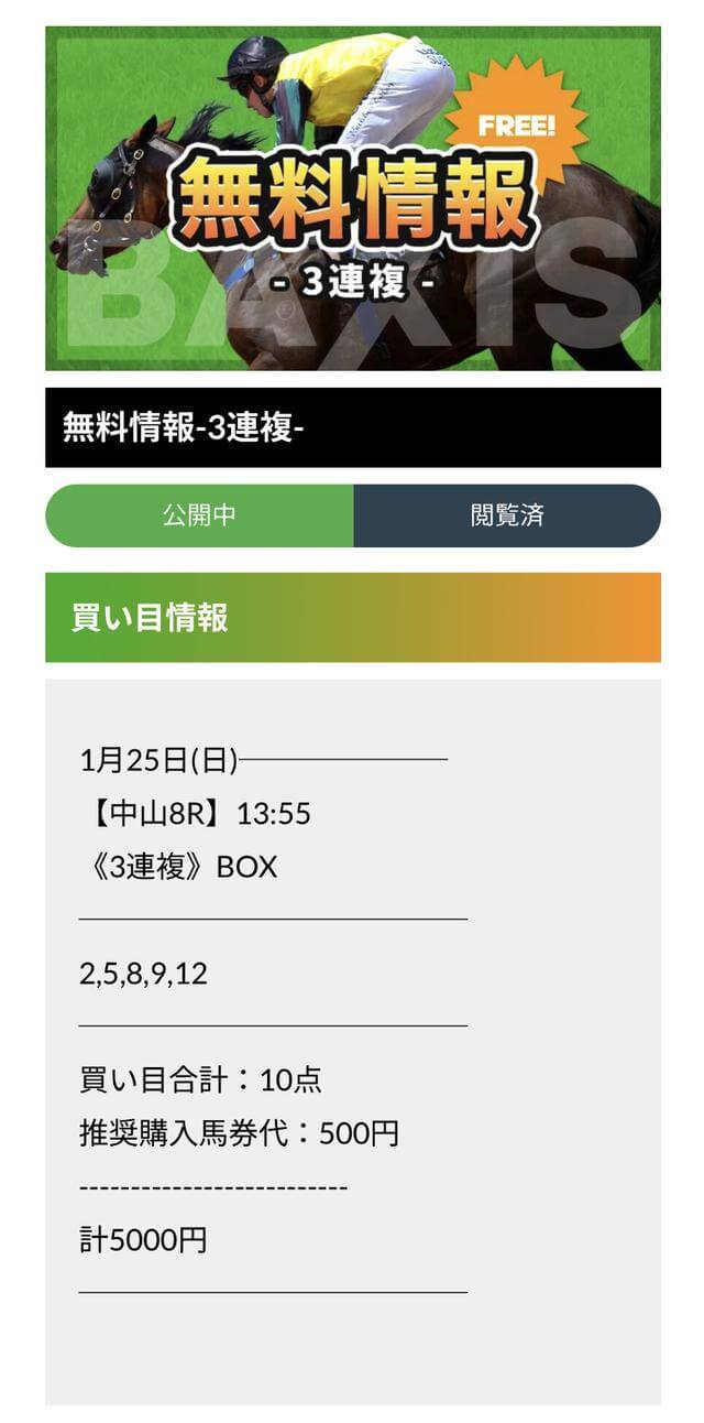 バクシスの無料予想成績まとめ