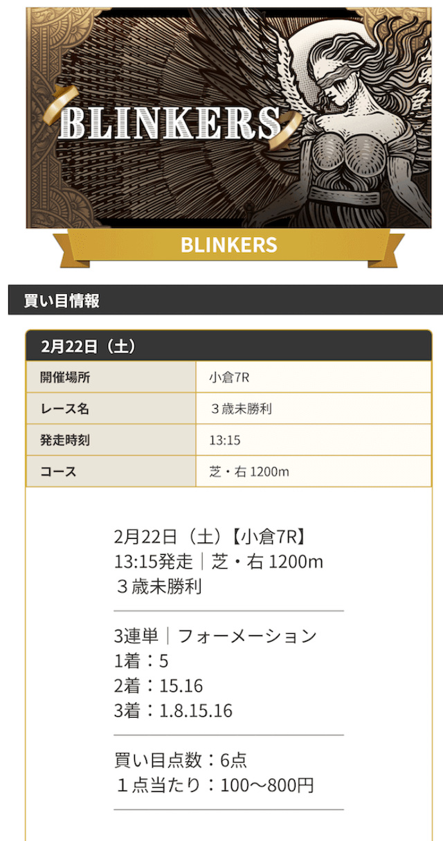 ディバイン 有料予想 BLINKERS 2025/02/22 小倉7R 3歳未勝利 買い目