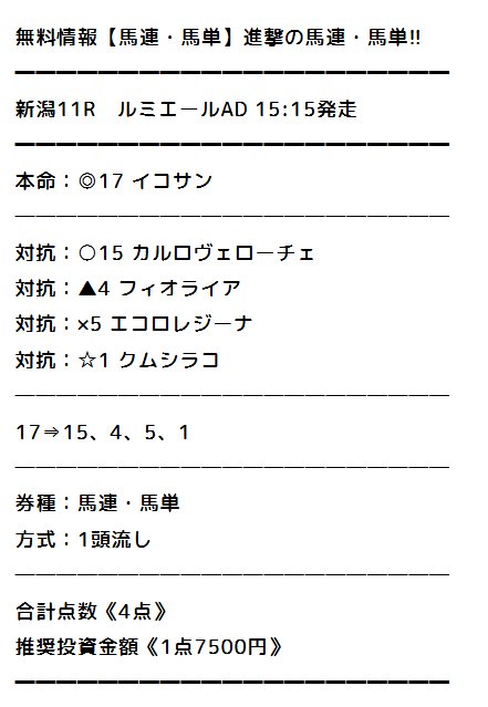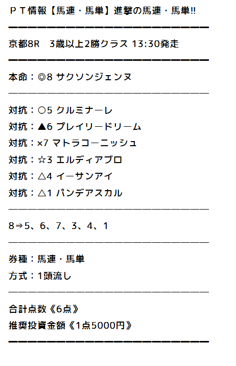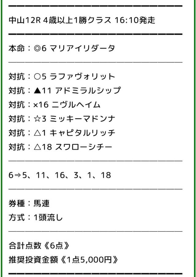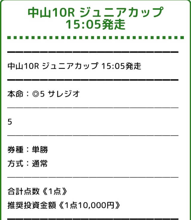 まさに、ローリスク・ハイリターンを忠実に再現したみどりの的中らんどの有料予想。