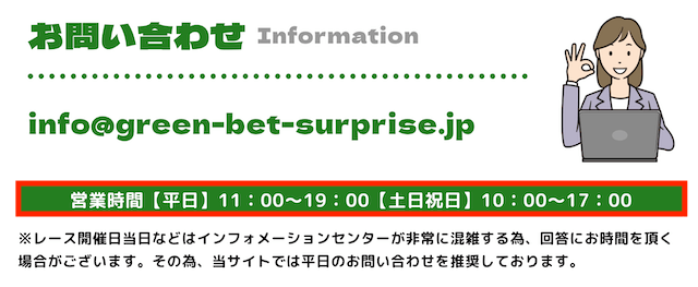 それもそのはず、みどりの的中らんどにも営業時間があるので、時間外のタイミングで問い合わせるとは早くても翌日対応になります。