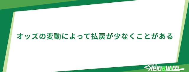 購入するタイミングが早くオッズの変動幅が大きければ、想定していた合成オッズよりも払戻が少なくなる可能性があります。
