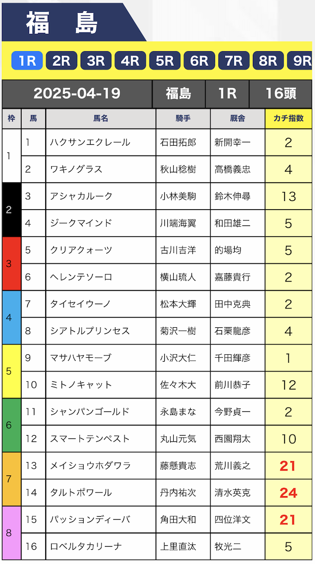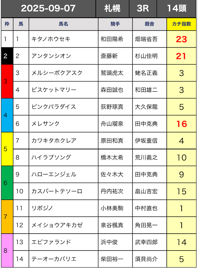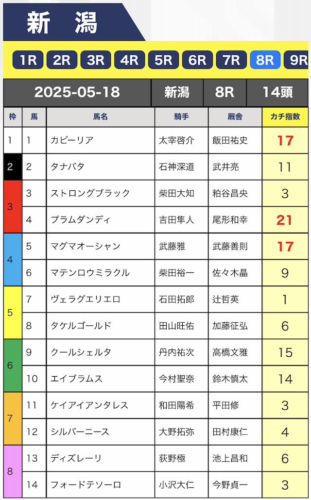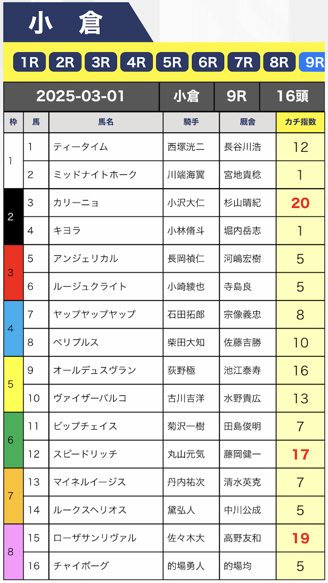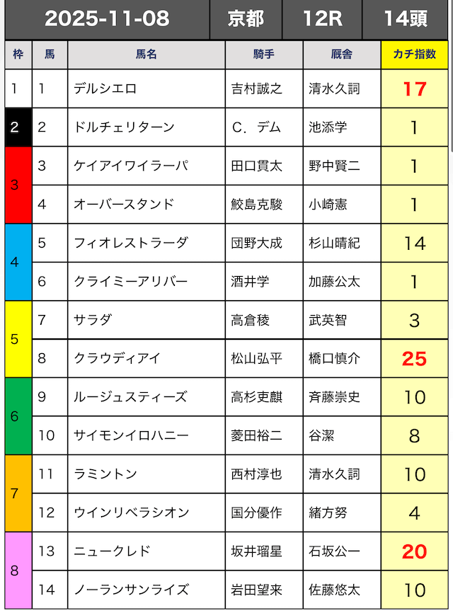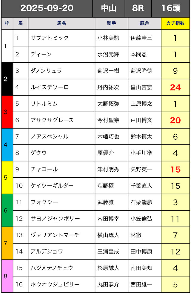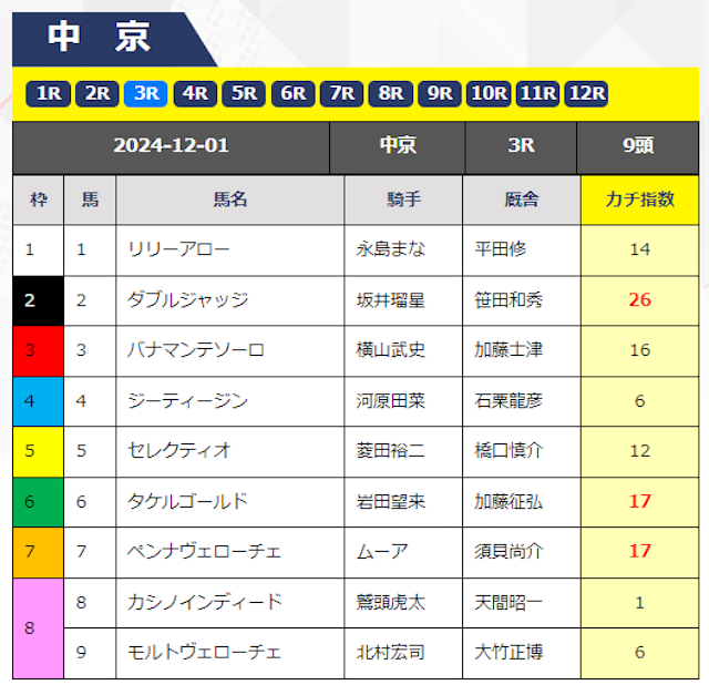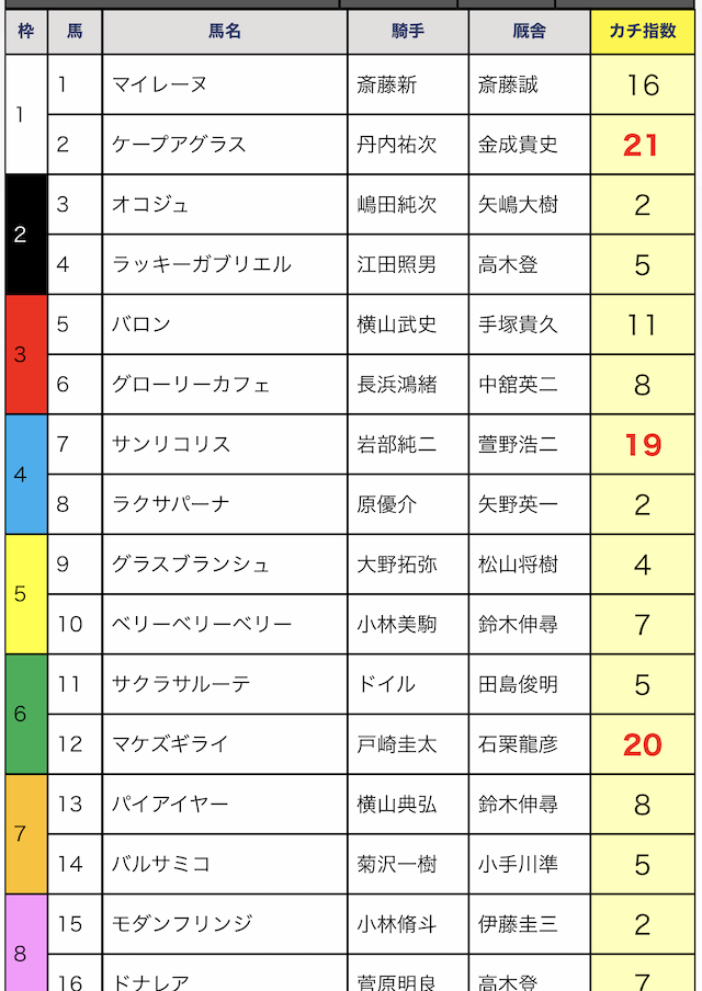 カチケンは、勝つ可能性が高い馬をカチ指数として数値化していますが・・・