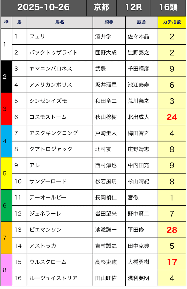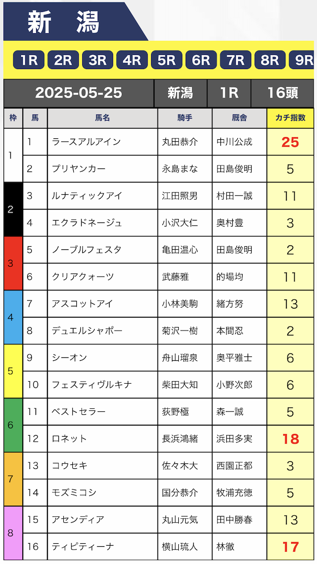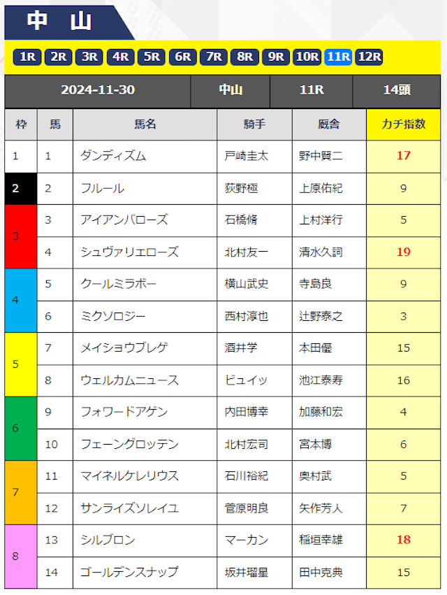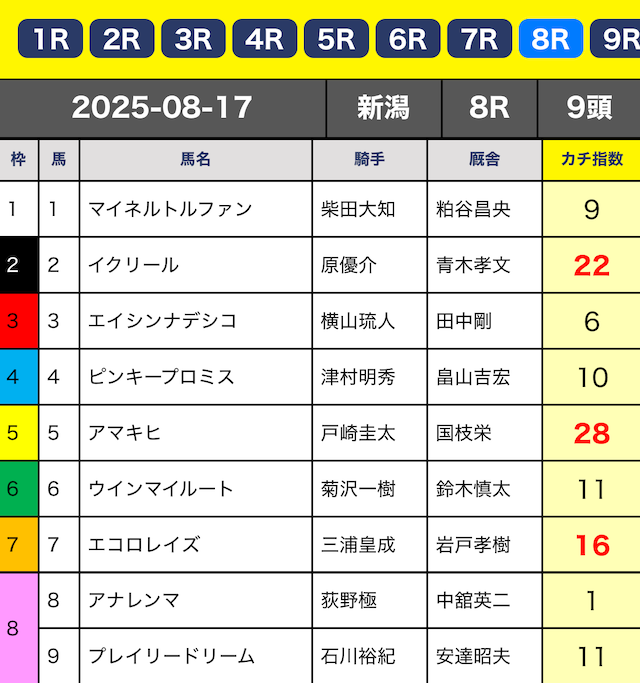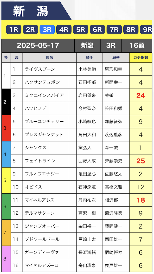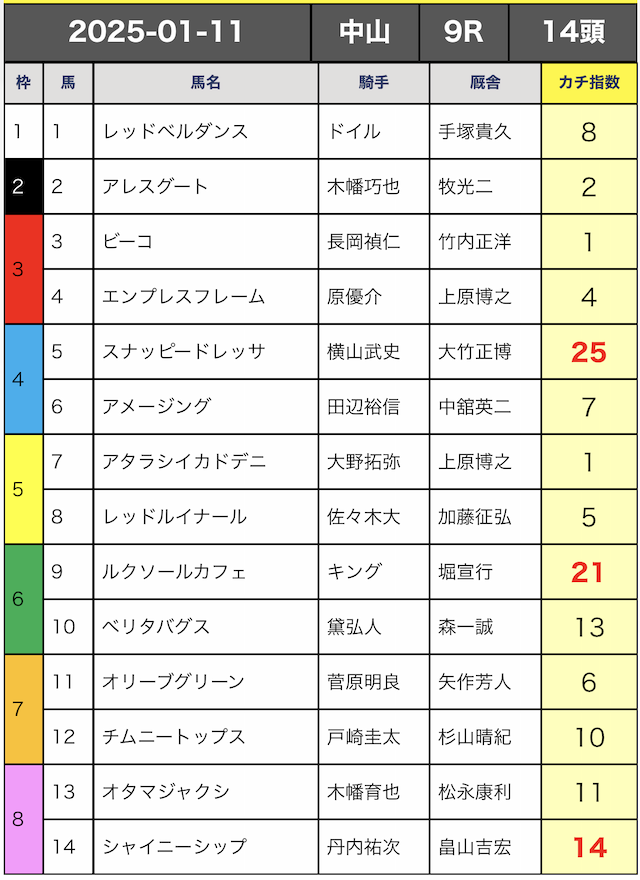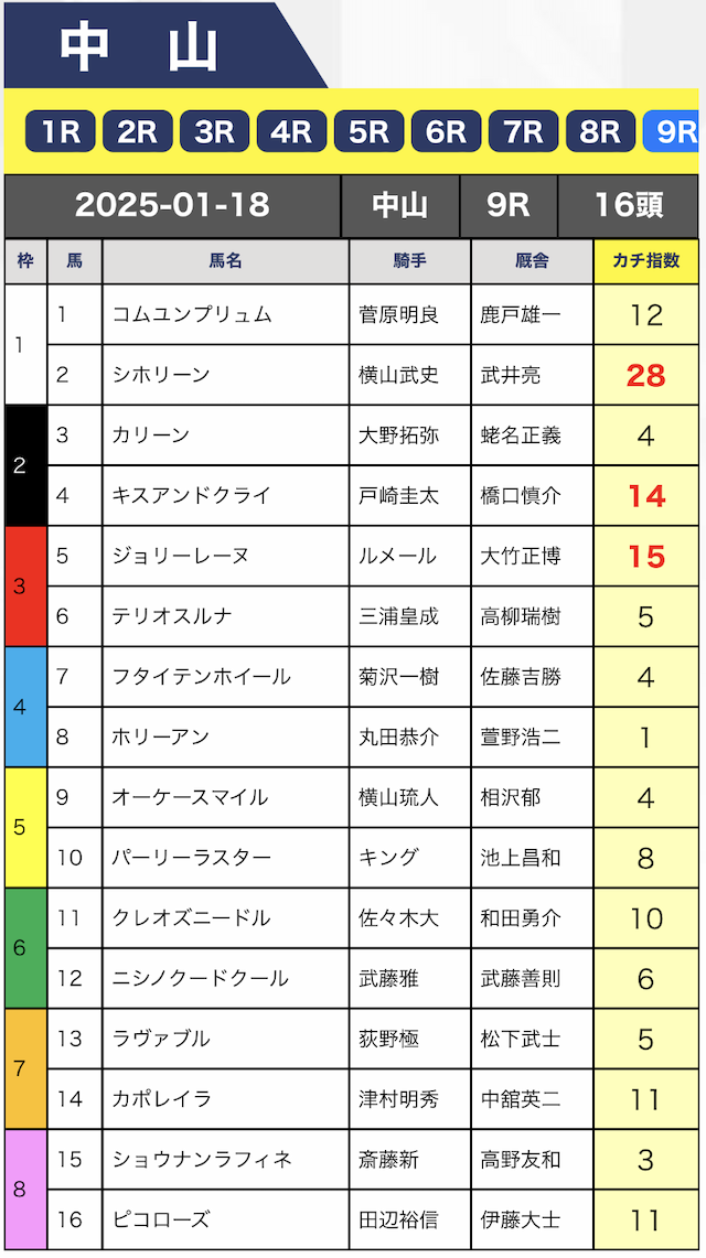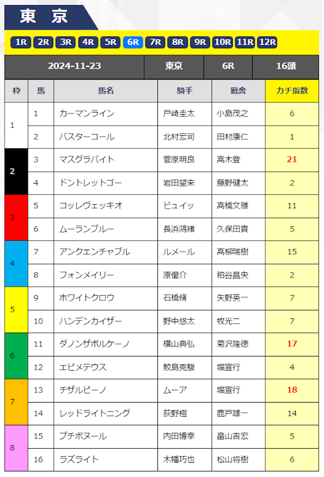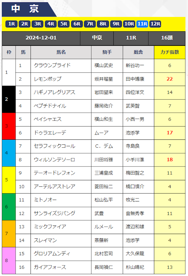 カチケンは、勝つ可能性が高い馬をカチ指数として数値化していますが・・・