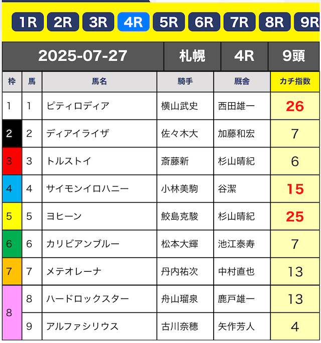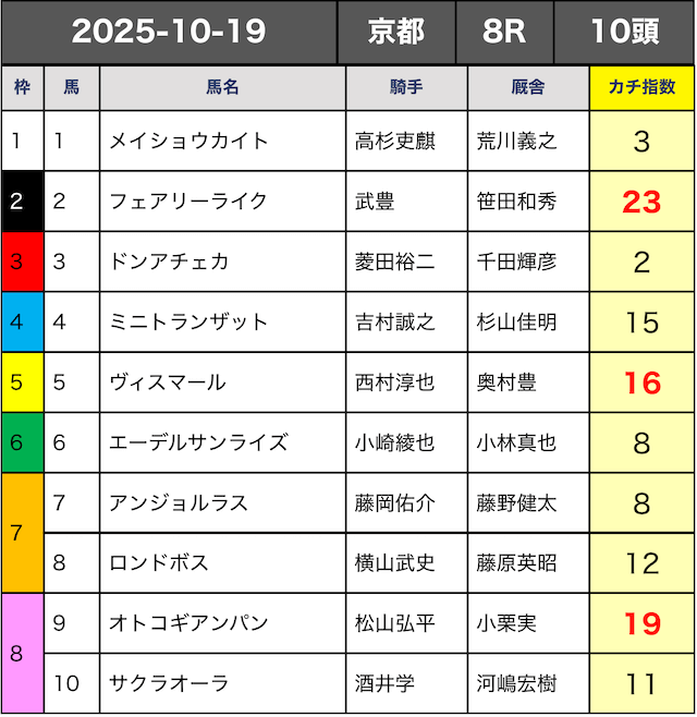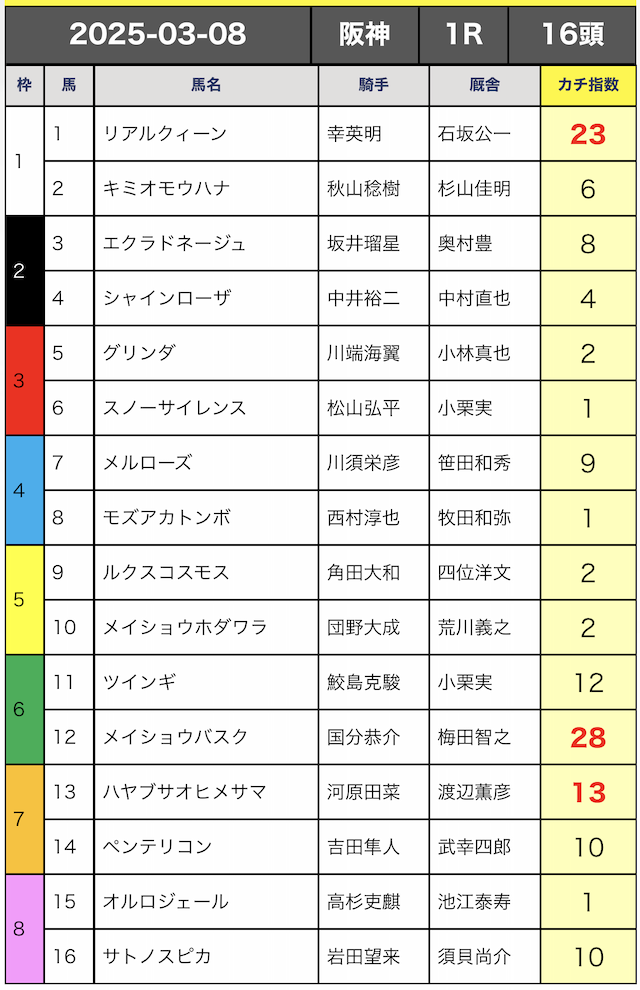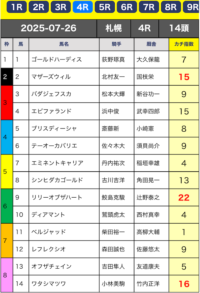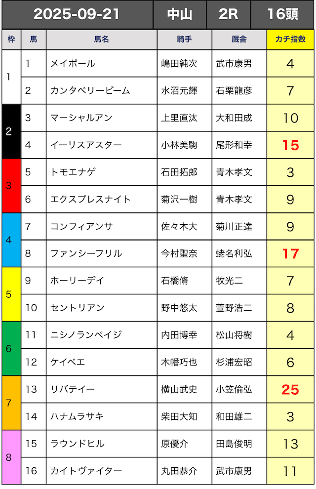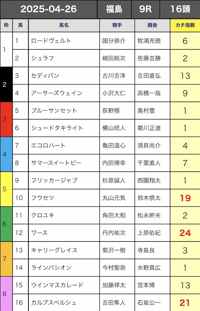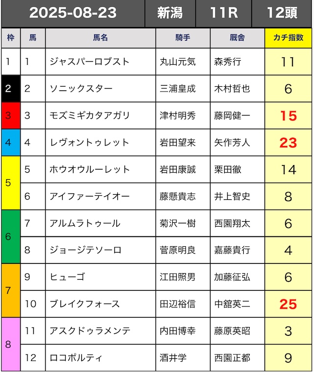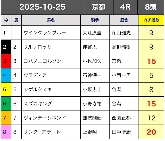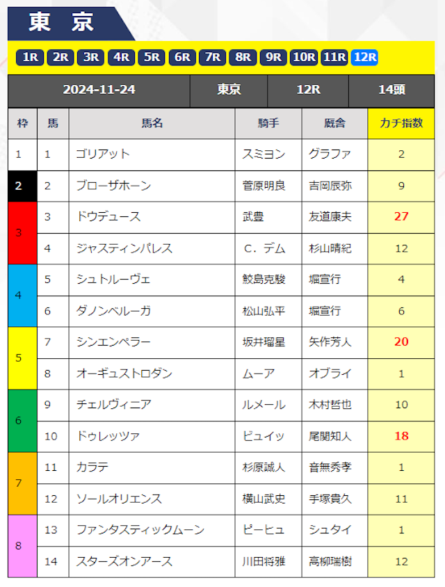 カチケンは、勝つ可能性が高い馬をカチ指数として数値化していますが・・・