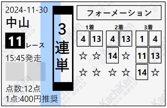 分析とは別に、ここからはカチケンが最も稼いだ無料予想をご紹介します!