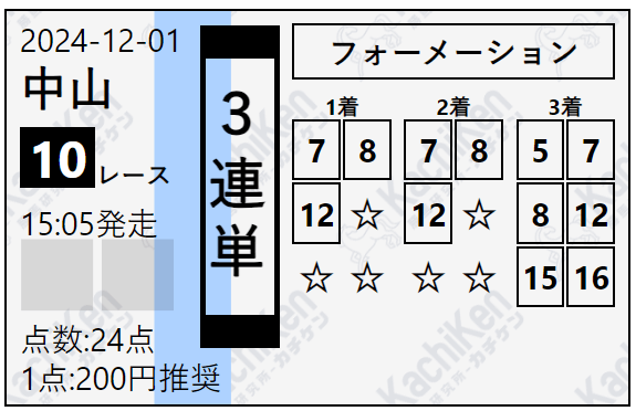 このレースをカチケンの無料予想はどのように予想したのか、見ていきましょう。