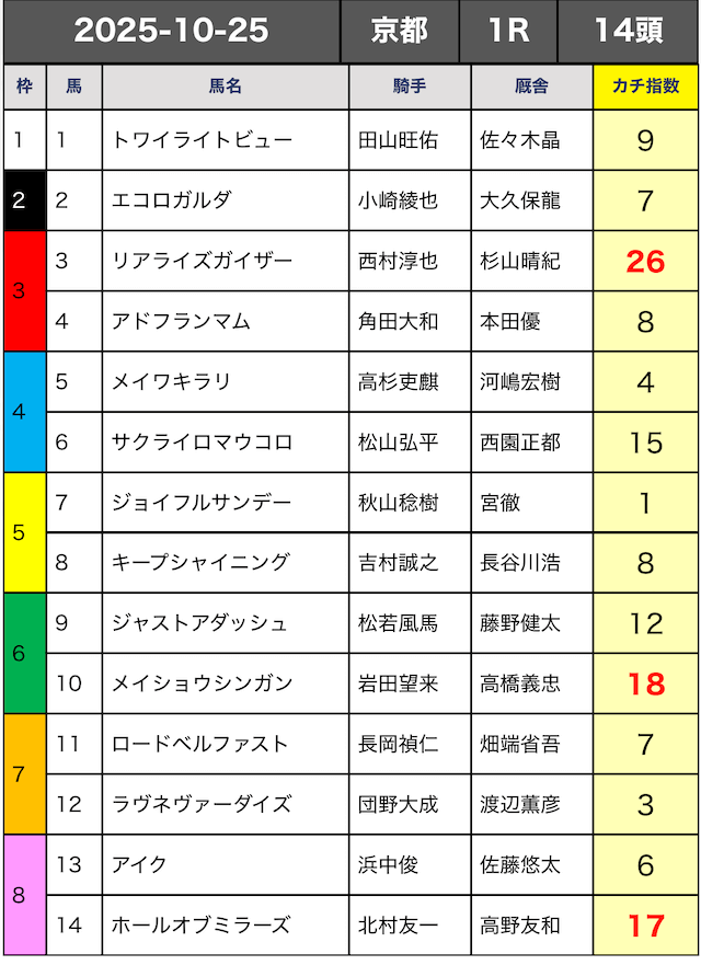 2025/10/04 メイクデビュー京都 0円 条件戦 3連複