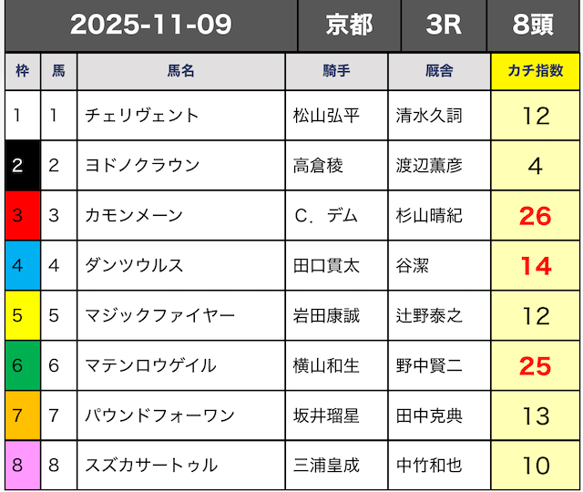 2025/11/08 3歳以上1勝クラス 0円 条件戦 3連複