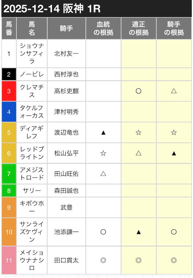 2025/12/14 阪神1R 2歳未勝利 10,000円 0円 条件戦 3連複