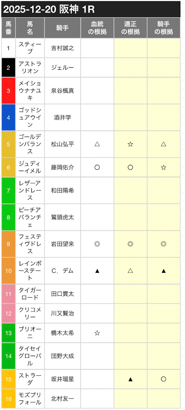 2025/12/20 阪神1R 2歳未勝利 10,000円 48,600円 条件戦 3連複