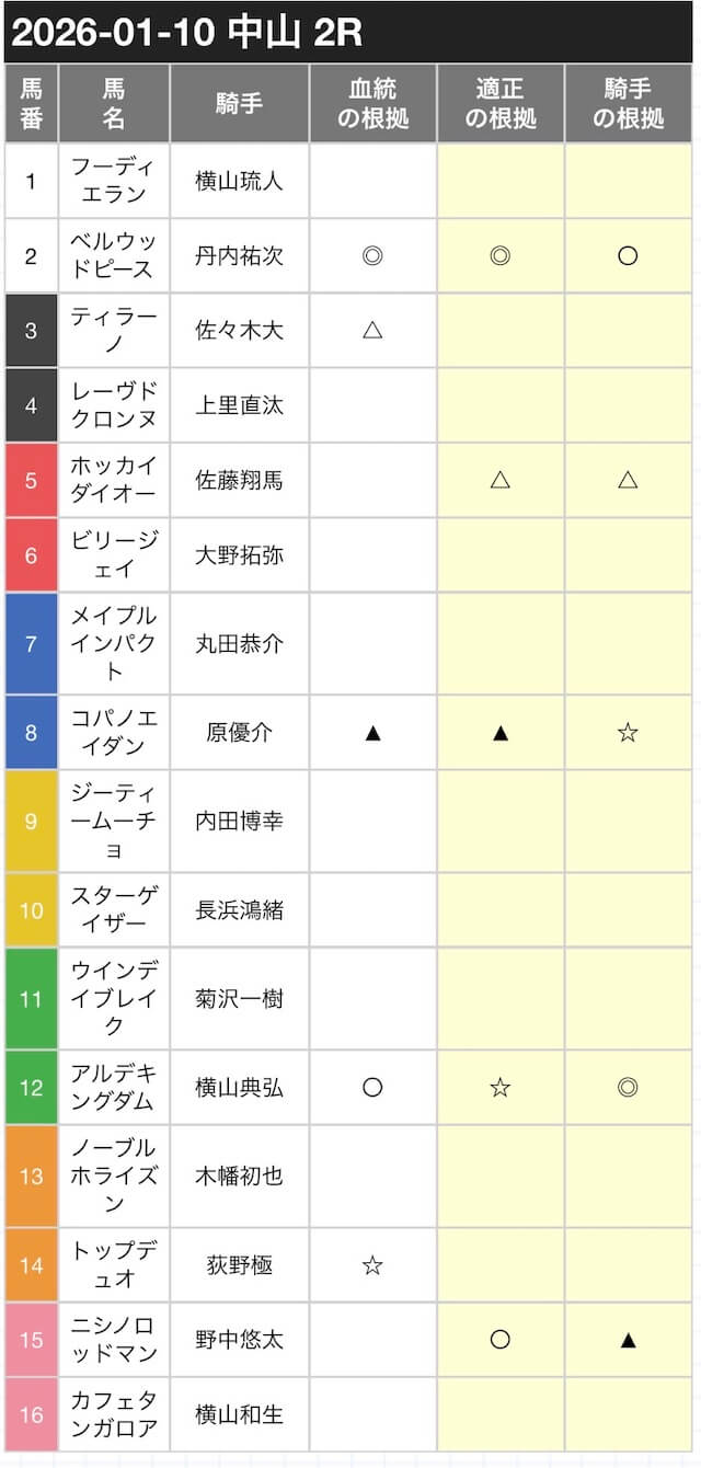 2026/01/10 中山2R 3歳未勝利 10,000円 18,100円 条件戦 3連複