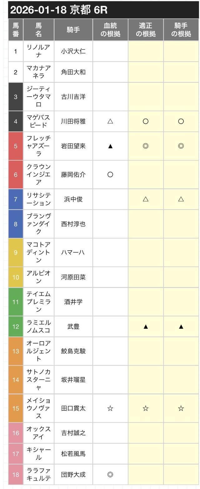 2026/01/18 京都6R 3歳未勝利 10,000円 81,800円 条件戦 3連複