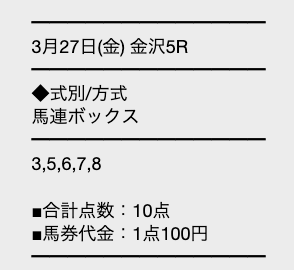 俺の基準なら攻めと回収のバランスがかなり強い買い目って評価になるな。