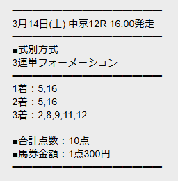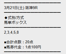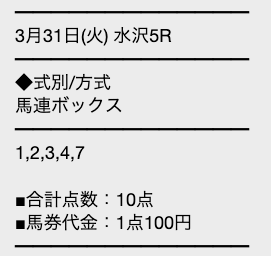 では、このレースに対して勝馬サプライズはどのような買い目で勝負したのか。実際に公開された予想を見ていきましょう!