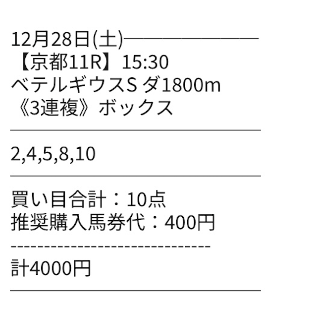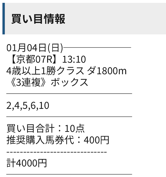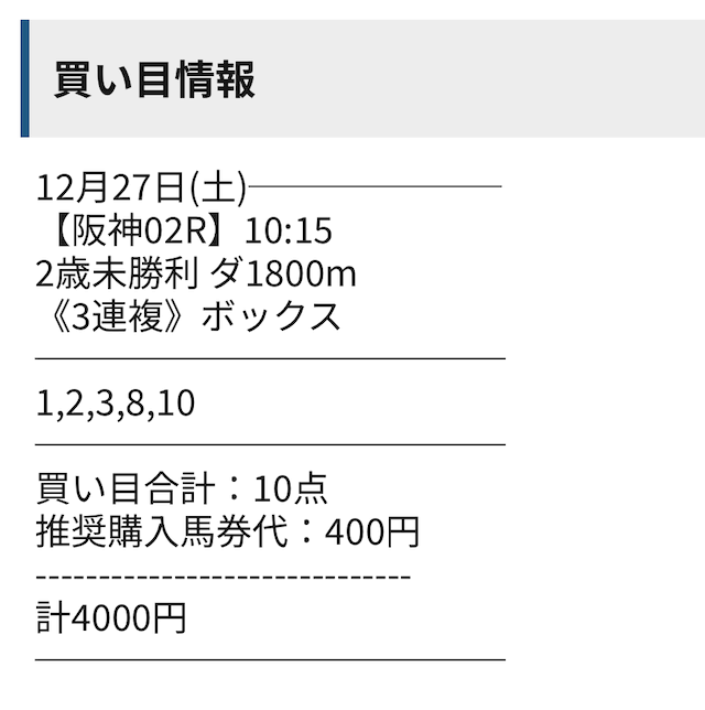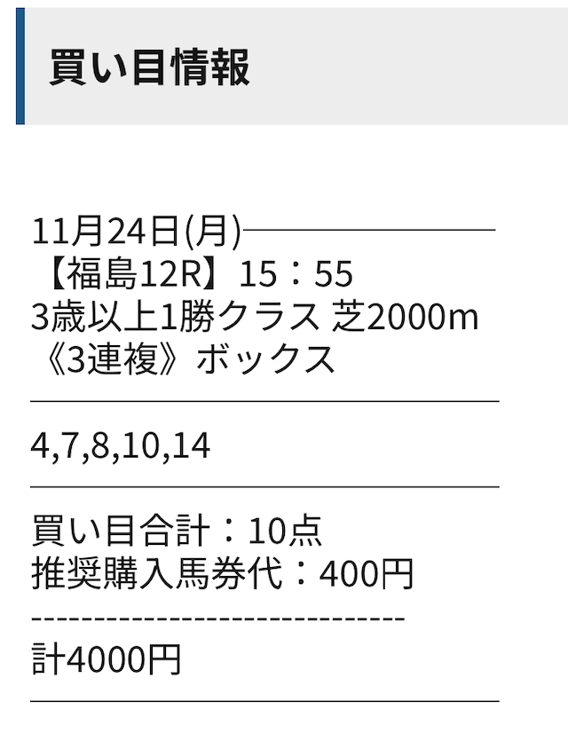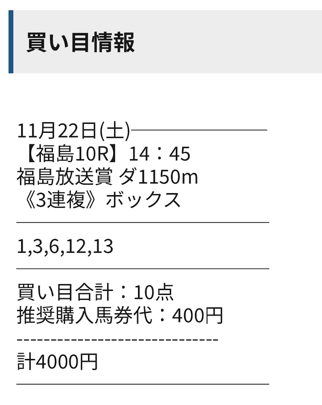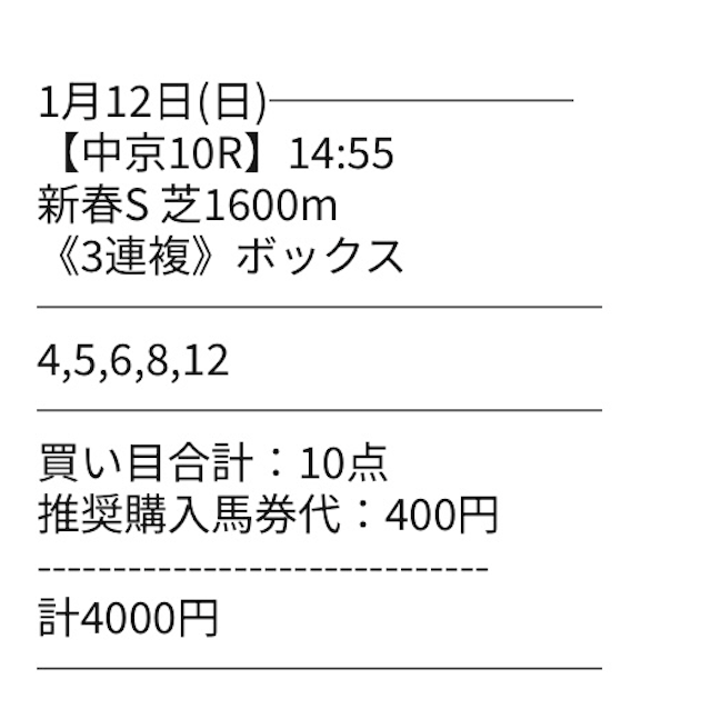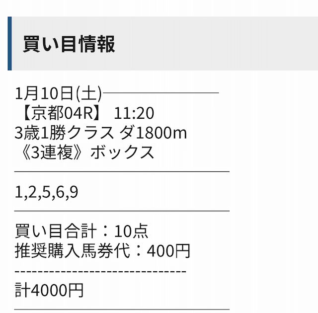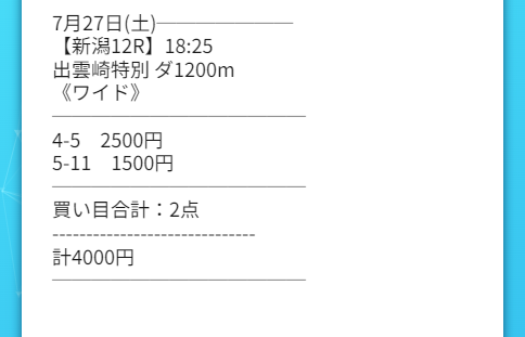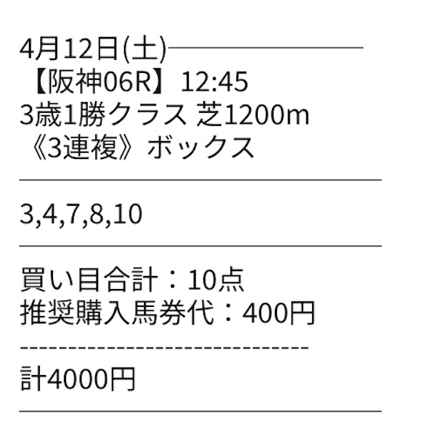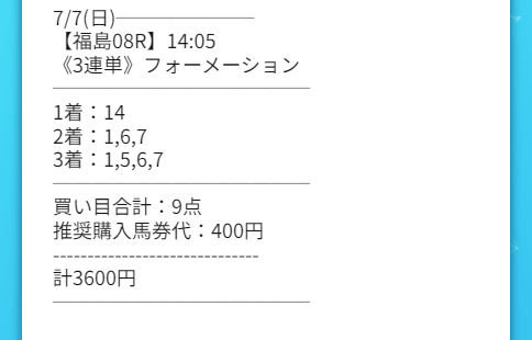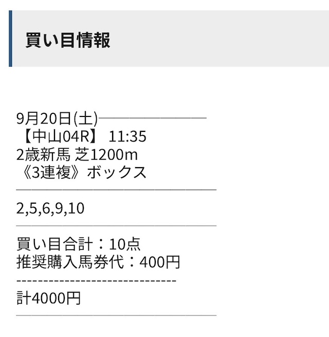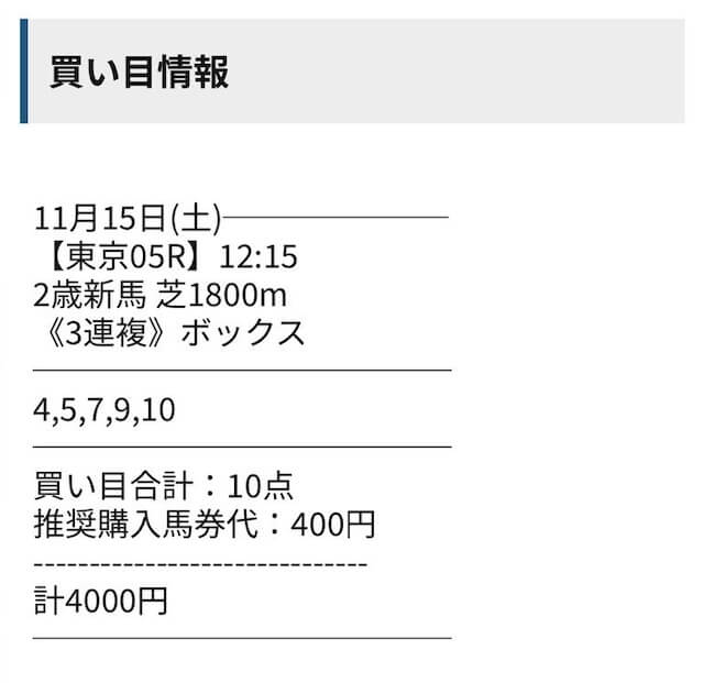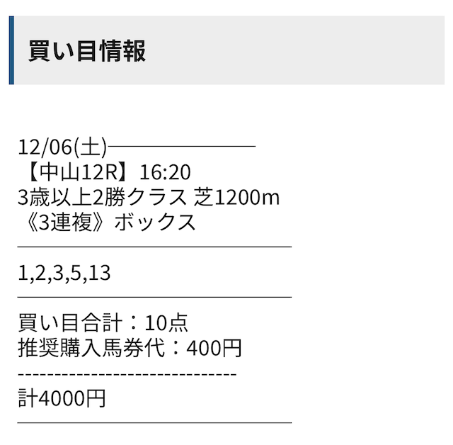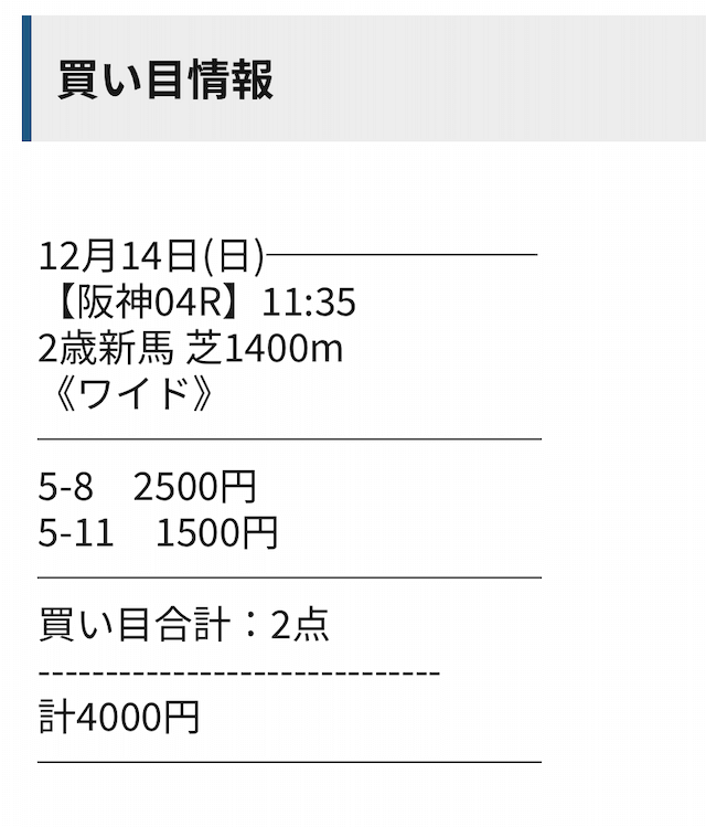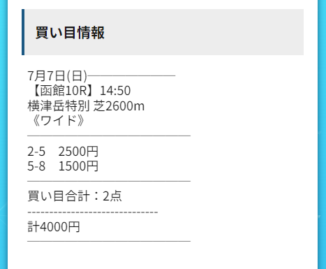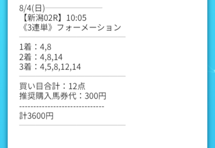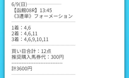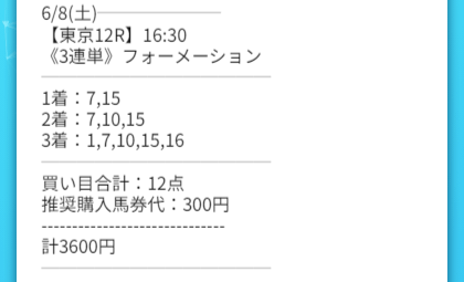 シンケイバはどんな予想で勝負するのか、実際に公開された買い目を見ていきましょう。