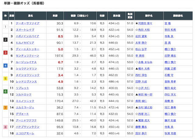 このレースの1番人気は⑪エリダヌス。札幌は初出走となりますが、鞍上が初タッグを組む横山武史騎手なのもあってか、人気を集めています。