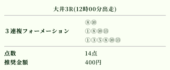券種は3連複の提供ですが、果たして目標金額に届くのでしょうか。
