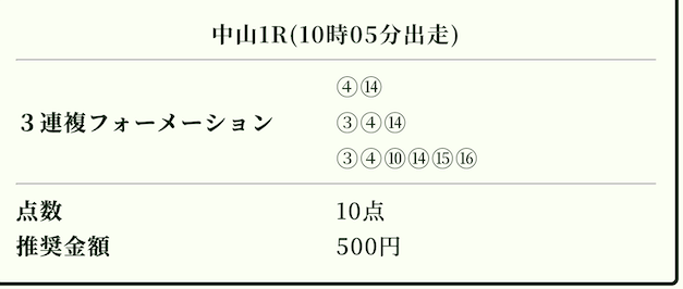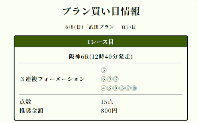 実際に公開された買い目がこちら。