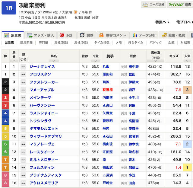 初検証は2026年1月4日中山1Rの「3歳未勝利」。