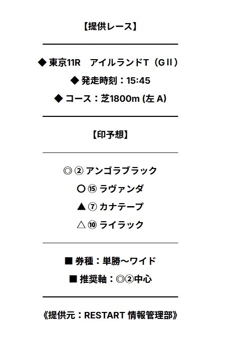 その東京競馬場で文句無しの結果を残しているリスタートは精査力に長けていると言えます。