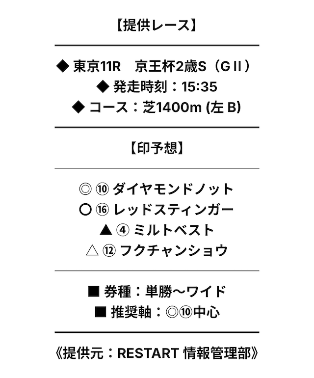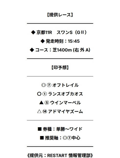 分析とは別で、リスタートが最も稼いだ無料予想をご紹介します。