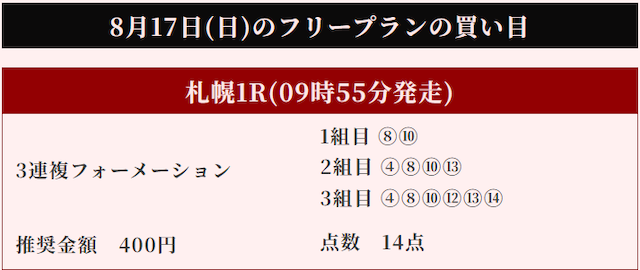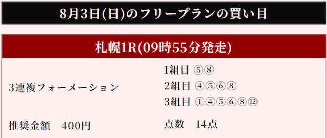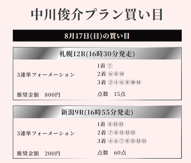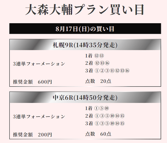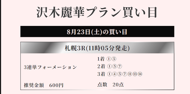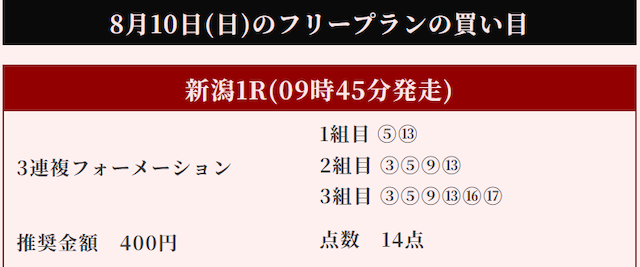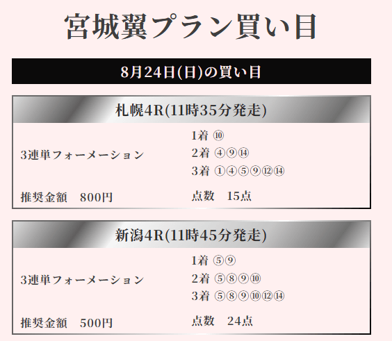 さらに馬券代を10,000円以内に抑えているため、複数のレース予想を公開しているプランは「負け」のリスクを最大限回避している印象。