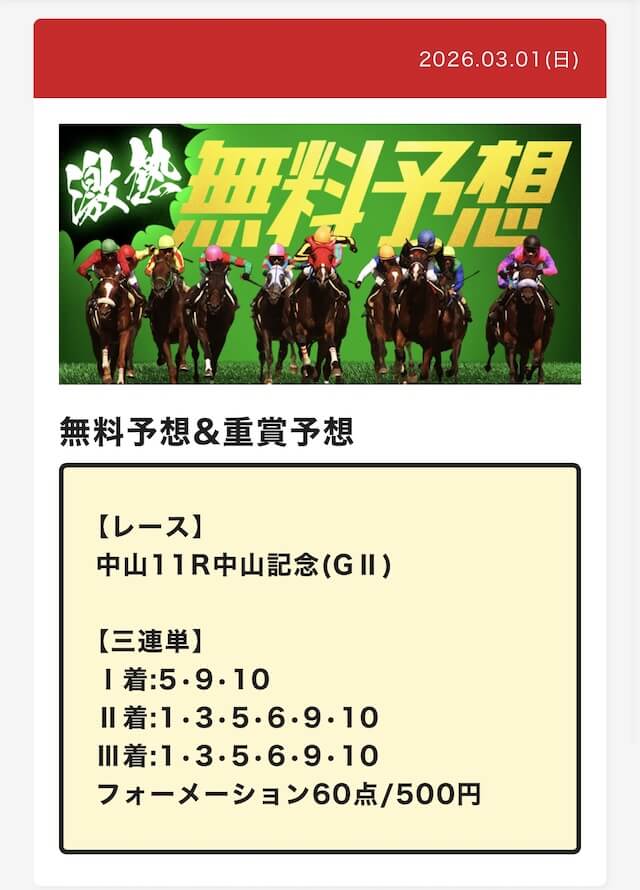 有料予想は安定感に加えて一攫千金も狙える精度が魅力。
