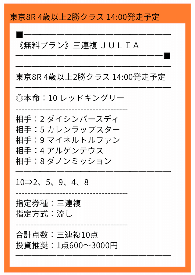 無料予想は得意・不得意がなく、オールラウンダーの活躍。
