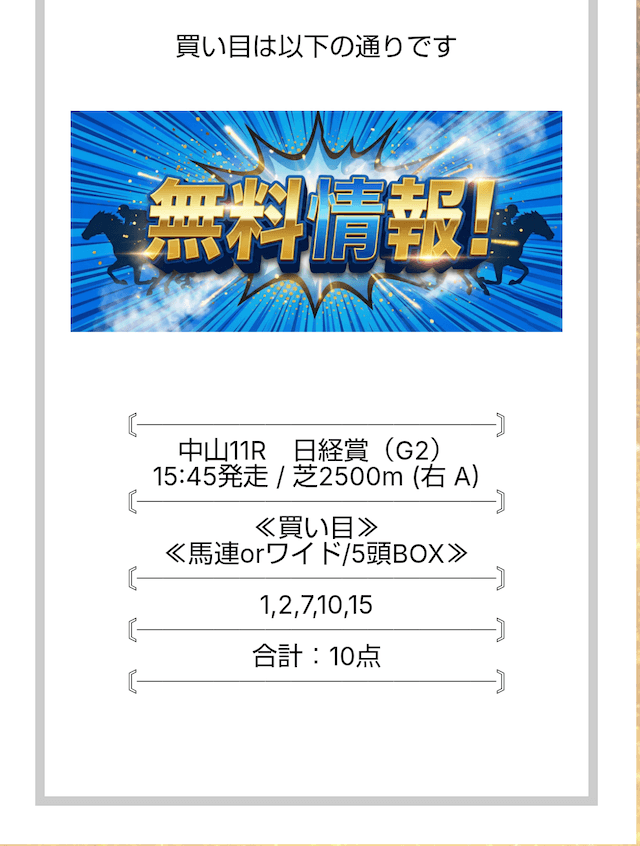 情報料金が必要なぶん、精度にも期待がかかる有料予想。