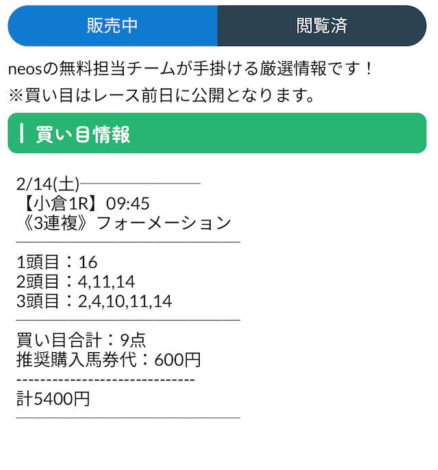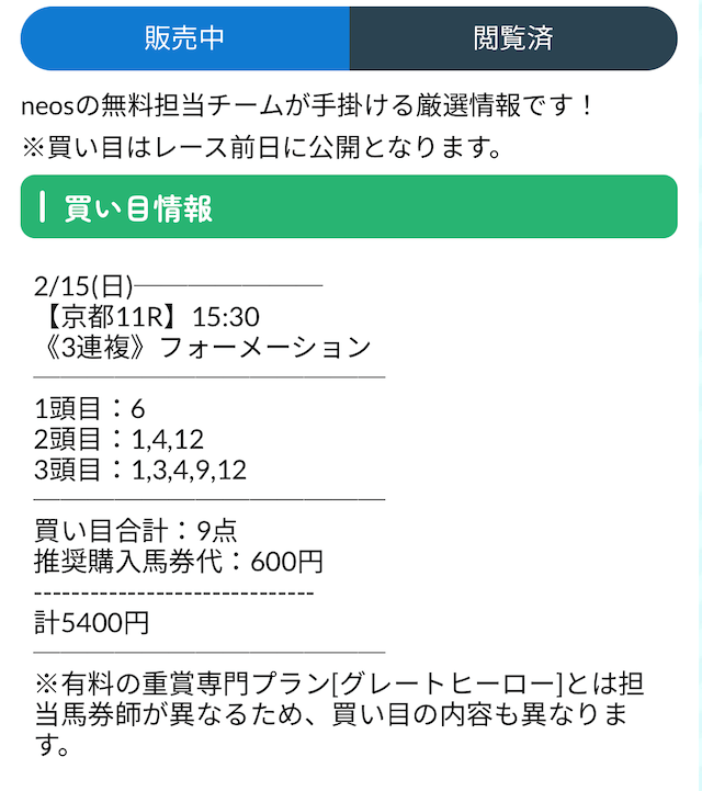 これまでに好成績を残しているネオスの予想が気になったという方は、下記から有料予想をチェックしてみてください!
