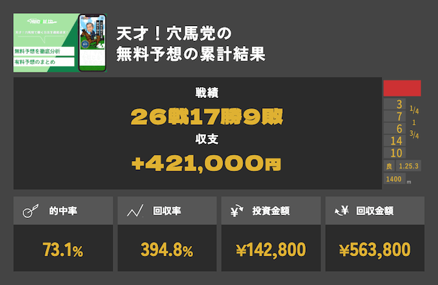 無料予想にもかかわらず、重賞レースの勝率が圧倒的に高く、払い戻し金も上昇中!!