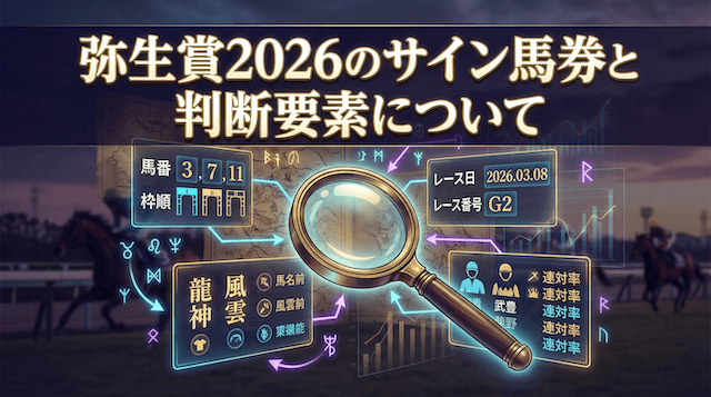 また、サイン馬券ではレース名「弥生」から連想される季節要素や、正式名称である弥生賞ディープインパクト記念の背景、出走馬の名前などを材料に考察が行われることが多く、競馬ファンの間でも毎年話題になるポイントです。