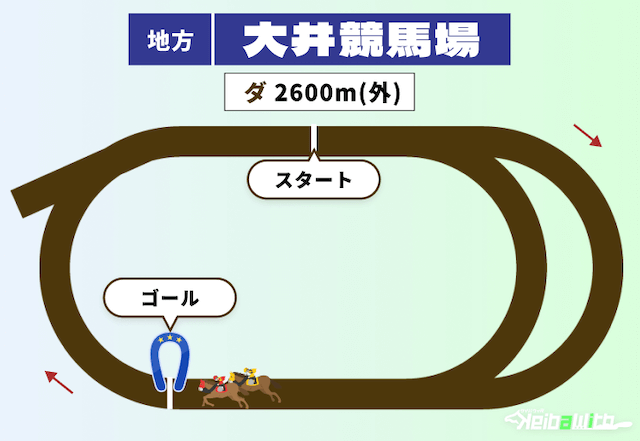 大井競馬場のダート2600mは、長距離戦における持続力が求められるコースです。