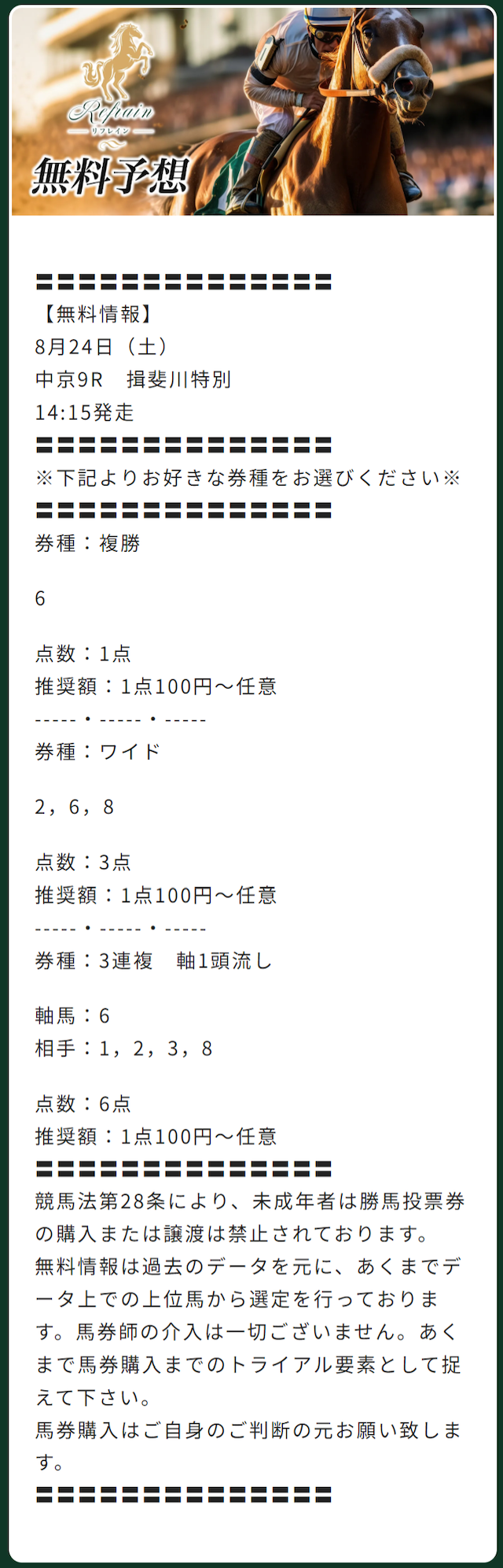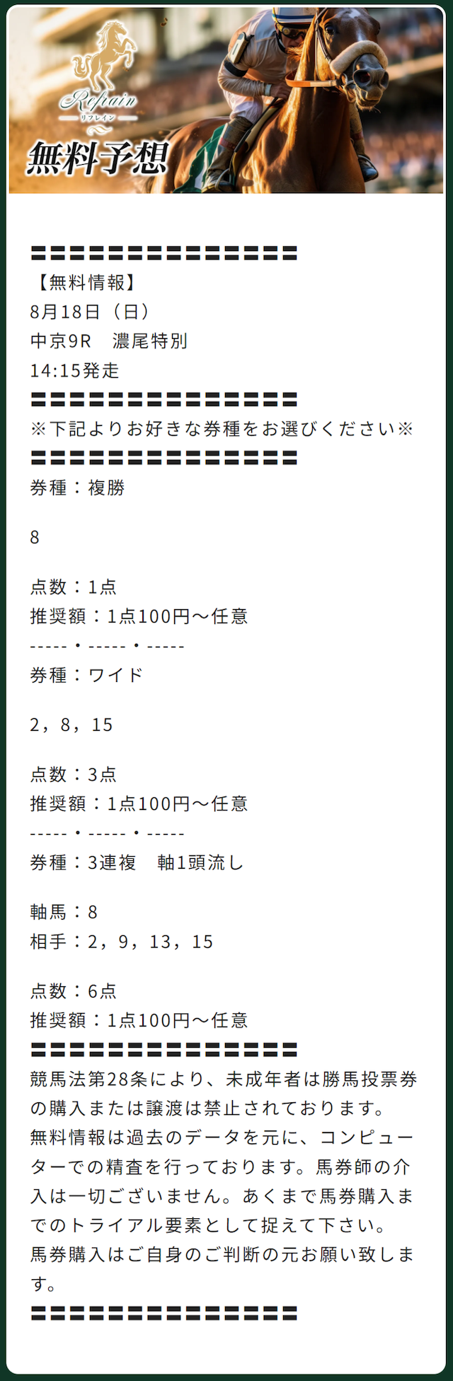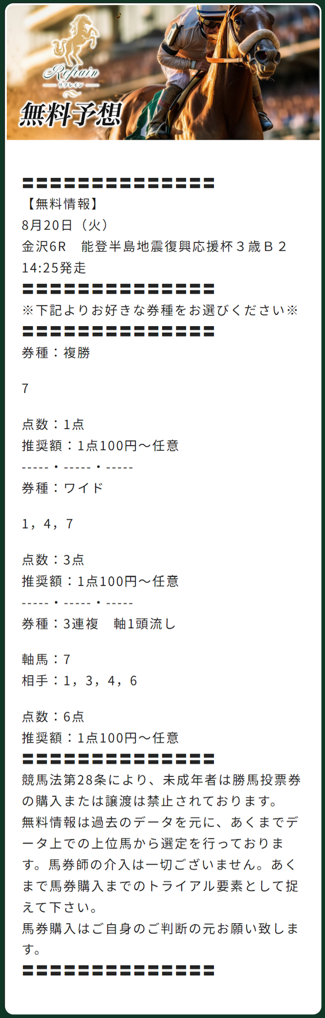 リフレインの有料予想の成績まとめ