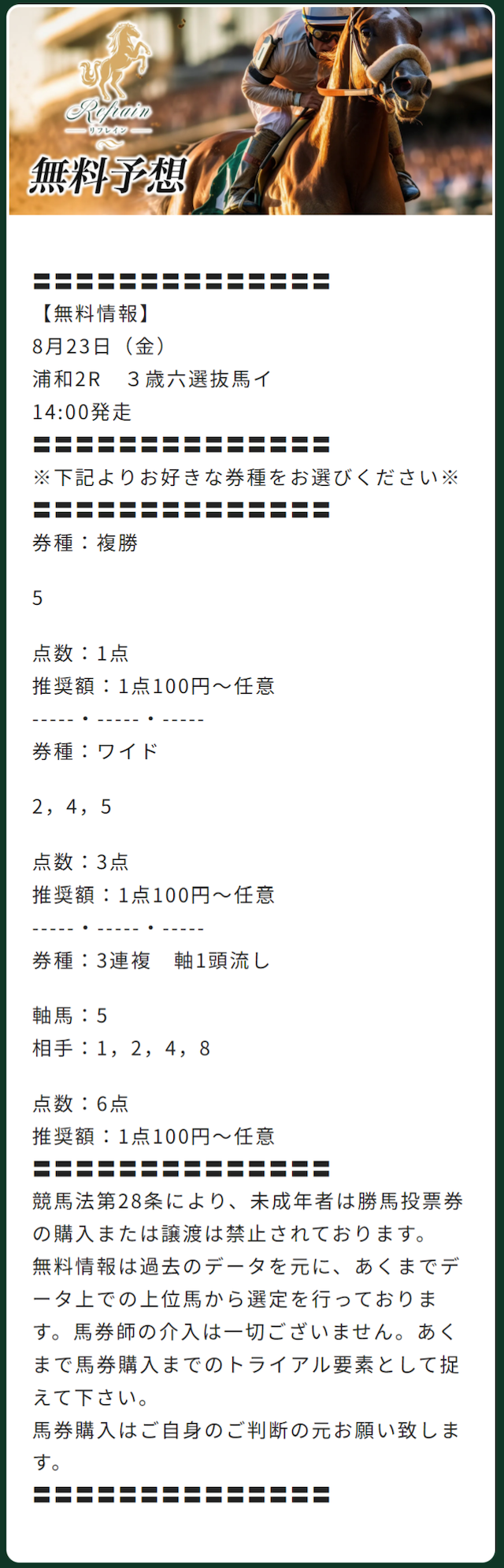 リフレインの無料予想成績まとめ