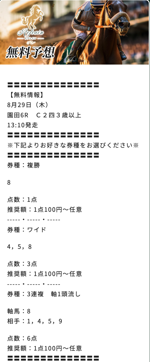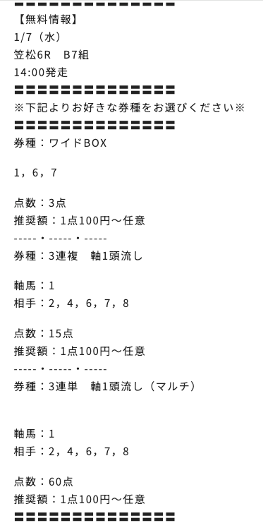 もし、少しでもリスクを下げて挑戦するのであれば、無料予想で有料予想の料金分を稼ぎましょう。