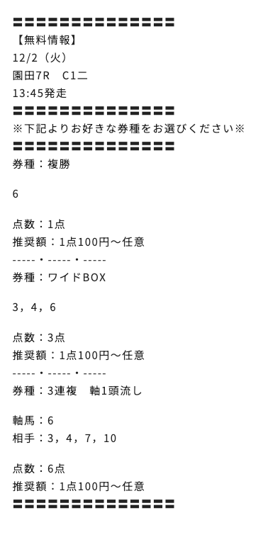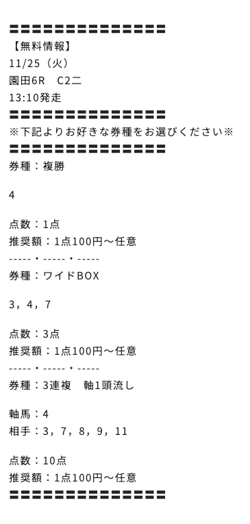 2025/11/25 園田6R C2二 6,000円 13,100円 一般 3連複