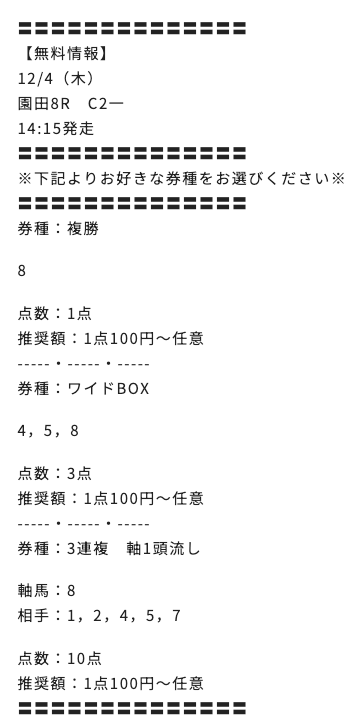 2025/12/04 園田8R C2一 4,000円 7,700円 一般 ワイド・複勝